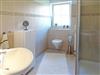 Das Badezimmer verfügt über eine ebenerdige Dusche, WC und Waschtisch.