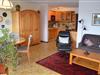 Die Ferienwohnung hat einen großen Wohnbereich mit offener Küche, einer Sofaecke mit Lesesessel und TV, Schrankbett und Esstisch mit 4 Stühlen.