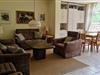 Die Fewo verfügt über ein Wohnzimmer mit 2er und 3er Couch, Couchtisch, Sessel und Bücherschrank.