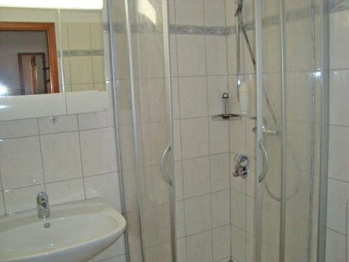 Zur Ferienwohnung gehören außerdem ein Flur mit Garderobe, ein Bad mit Dusche/WC, eine separate Küchenzeile und ein separates Schlafzimmer mit Doppelbett.