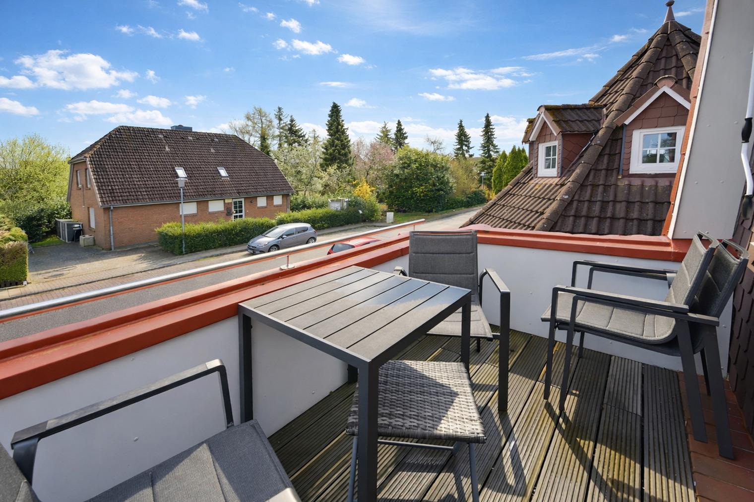 Der schöne kleine Balkon bietet auch vor Ort die Gelegenheit die Sonne genießen zu können.