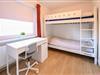 Das Kinderschlafzimmer ist mit Etagenbett und Schreibtisch ausgestattet.