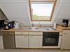 Die Küche ist vollständig ausgestattet und verfügt über einen neuen Herd mit Cerankochfeld, Umluft-Backofen, Kühlschrank mit kleinem Gefrierfach, Geschirrspüler sowie einem DeLonghi Kaffee Vollautomaten. Für Filterkaffee-Liebhaber ist selbstverständlich auch eine Kaffeemaschine vorhanden.