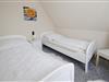 Im Schlafzimmer befinden sich zwei einzeln stehende Betten.