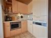 Die Küchenzeile ist in den Wohnraum integriert, der Esstisch ist für 4 Personen ausgelegt.
