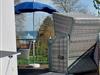 Der Balkon der Ferienwohnung erstreckt sich komplett um das Appartement und bietet mit Balkonmobiliar und Strandkorb den perfekten Rahmen für Ihren Erholungsurlaub. Zwischen den Bäumen bietet sich ein Weitblick zur Ostsee.