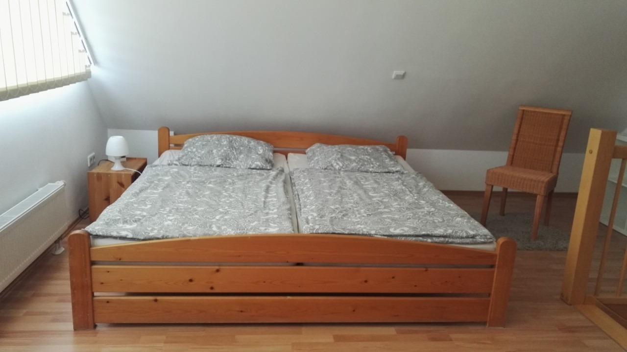 Das Dachgeschoss beherbergt eine stilvolle Galerie, die mit einem Doppelbett ausgestattet ist und zusätzlichen Schlafraum bietet.