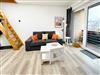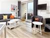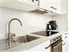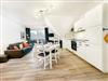 Duschbad mit Dusche, Fenster, Waschbecken und Waschmaschine, voll ausgestattete offene Küche mit Geschirrspüler, Kühlschrank, Kaffeemaschine, Backofen, Mikrowelle, Wasserkocher und Geschirr. Schlafzimmer (1) mit Doppelbett (2x 90x200), Kleiderschrank und Nachtischleuchten. Schlafzimmer (2) mit zwei Einzelbetten (90x200), Kleiderschrank und Nachtischleuchten. Wohn-/Esszimmer "Designerböden" mit Sofaecke, TV, Esstisch mit Stühlen und Zugang zum bestuhlten (2 Stühle, 1 Tisch) Süd/West-Balkon.