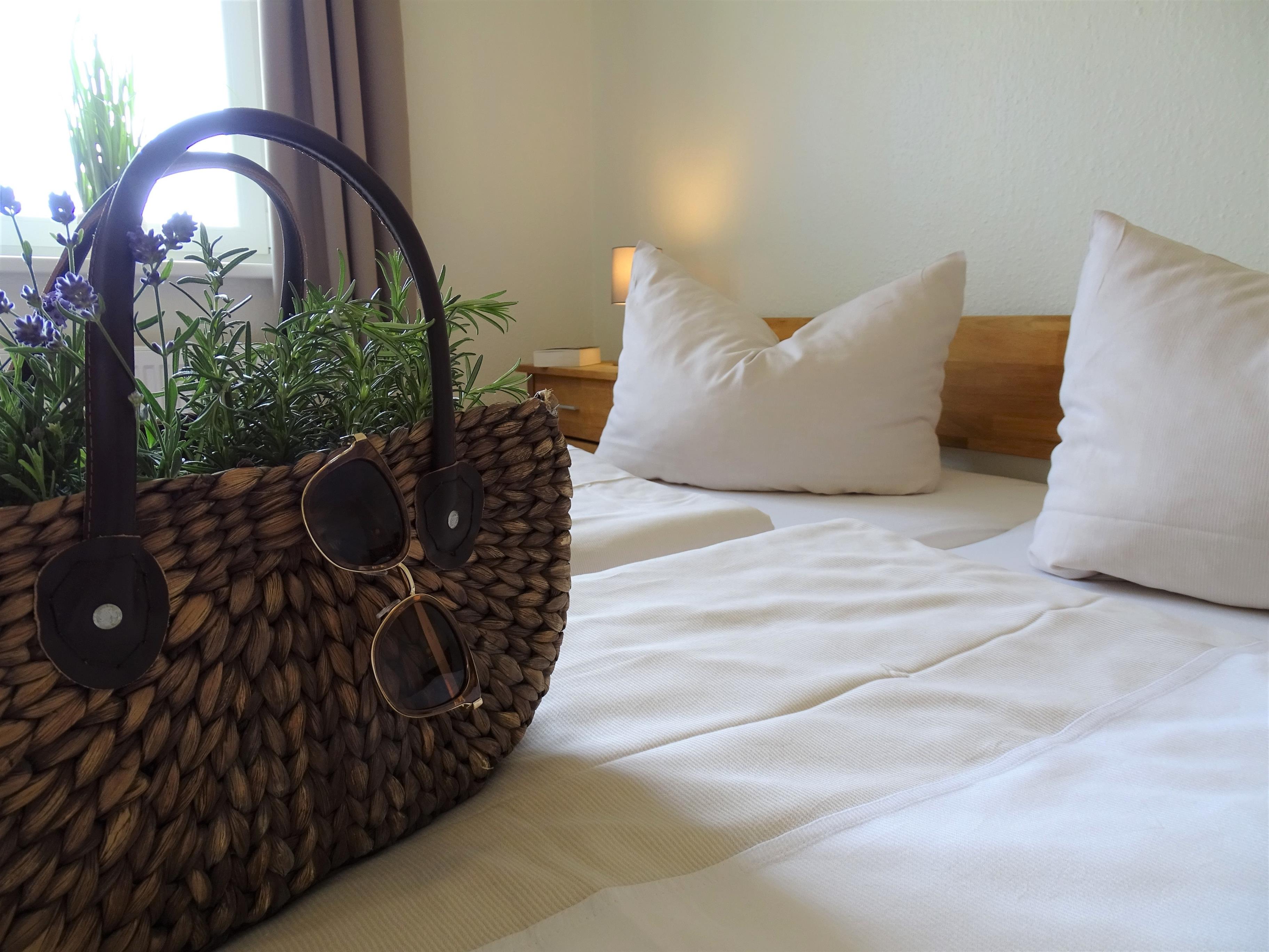 Unsere schöne und geräumige Ferienwohnung (ca.64m²) in ruhiger, strandnaher Lage ist ausgestattet für 4 Personen und verfügt über 2 separate Schlafzimmer. Sie befindet sich im 1. Obergeschoss des einladenden Hauses...Sie bietet ein modernes Wohnzimmer mit Couch- und Essecke, SAT-Flachbild-TV und integrierte offene Küchenzeile. Die Einbauküche ist mit Geschirrspüler, Backofen, Ceranfeld, Mikrowelle, Kaffeemaschine, Toaster uvm. ausgestattet... Die Schlafzimmer (einmal mit Doppelbett und eines mit getrennt stehenden Einzelbetten) sind gemütlich eingerichtet. Das Duschbad ist hell und geräumig. Genießen Sie Ihre Urlaubsstunden auch auf dem sonnigen Balkon...