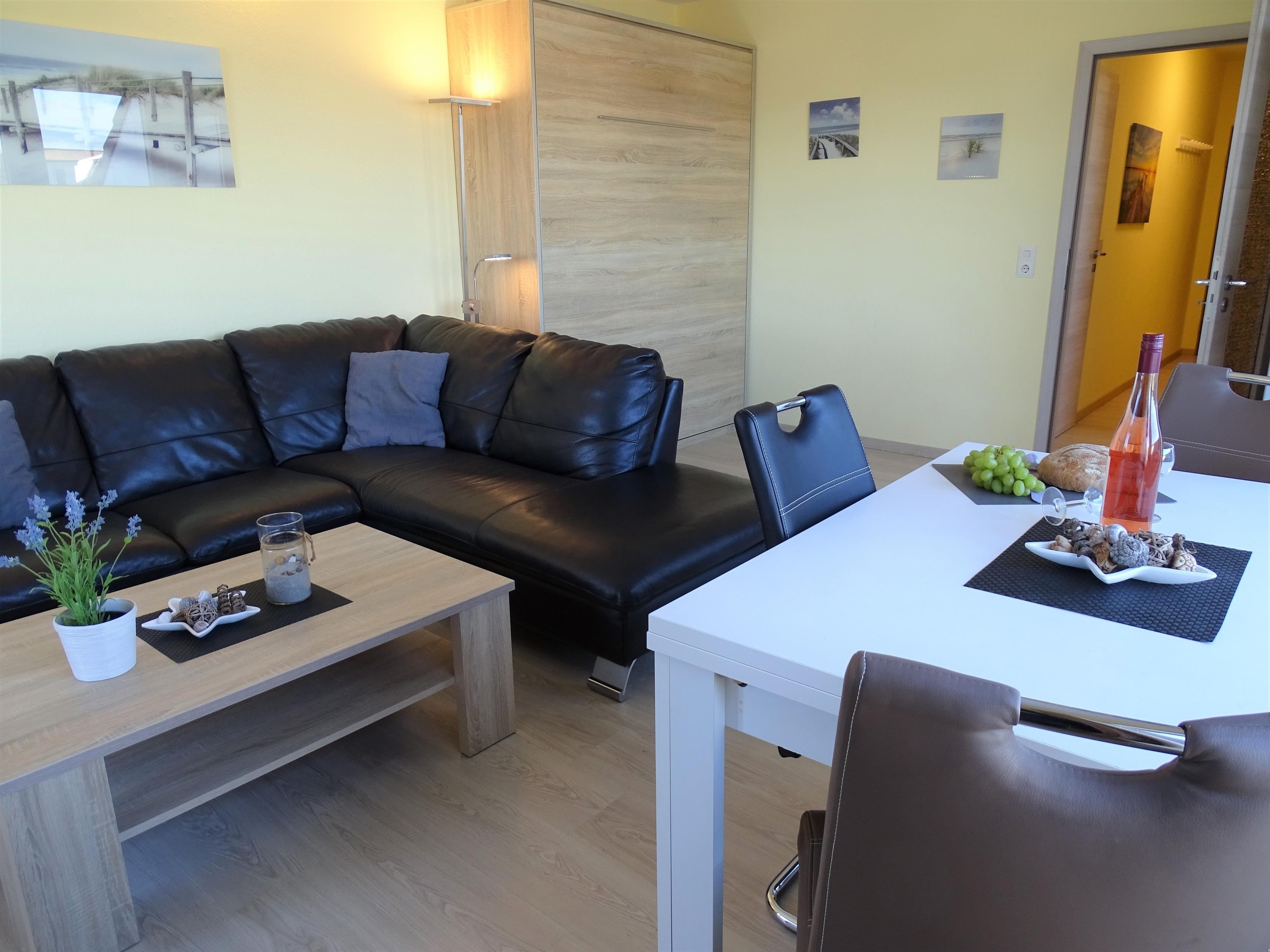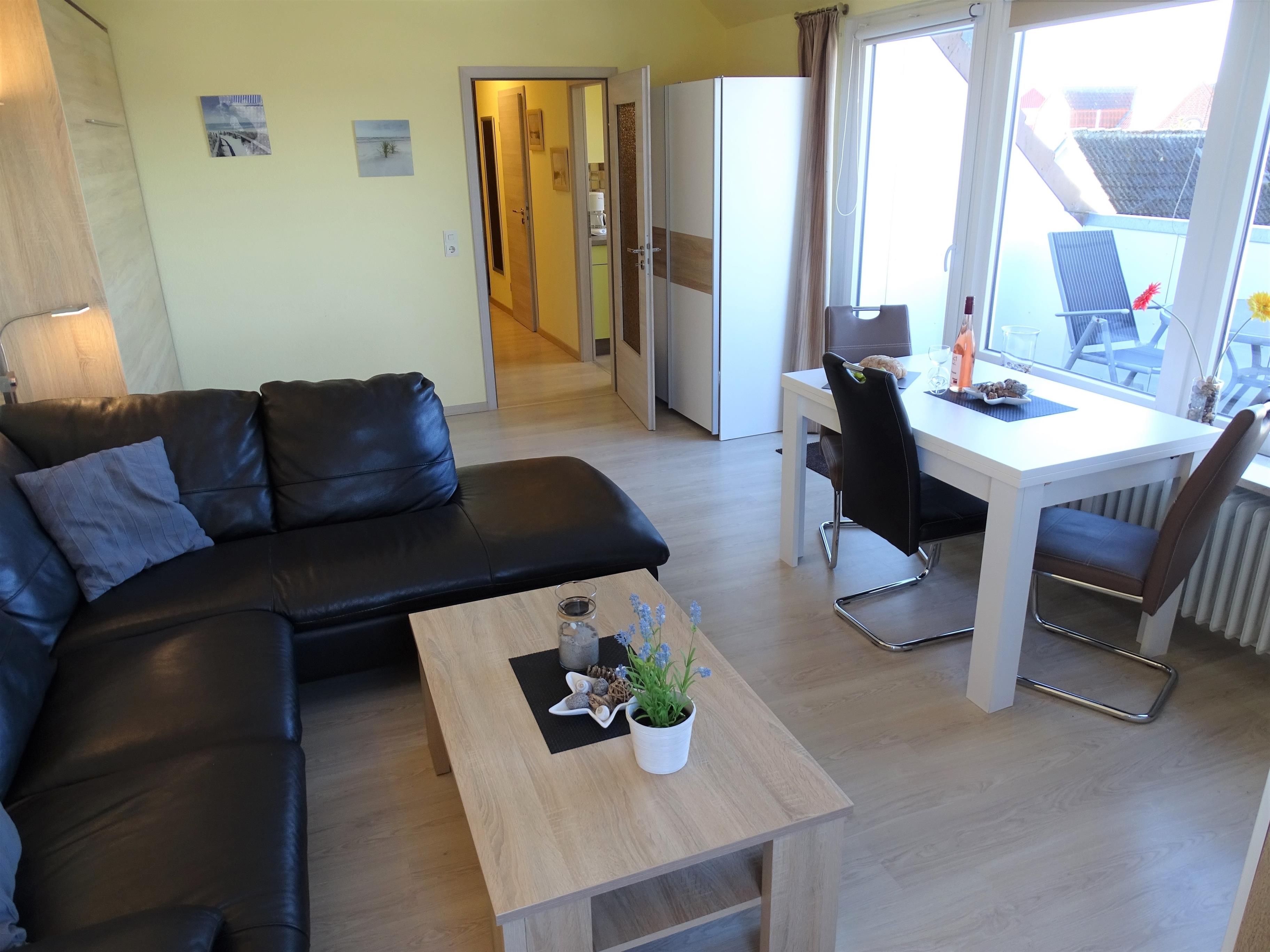 Die Ferienwohnung "Wölkchen" ist liebevoll eingerichtet und befindet sich im 2. Obergeschoss (Dachgeschoss) eines Mehrfamiienhauses in guter Ortslage. Sie ist aufgeteilt in Flur/Eingangsbereich, kleiner Abstellkammer für Strandutensilien/Koffer etc., einem "Kinderzimmer" mit Etagenbett, einer kleinen separaten und funktionalen Küche, einem neu gestalteten Badezimmer mit Dusche/WC, und einem Wohnzimmer mit Ecksofa, Esstisch mit Bestuhlung, TV, Radio, praktischem Schrankbett (als Doppelbett) und Zugang zum Balkon. Der PKW Stellplatz befindet sich direkt am Objekt, Fahrräder können im Fahrradkeller sicher abgestellt werden. Ebenfalls im Keller befinden sich Waschmaschinen zur Nutzung gegen Gebühr. Bitte haben Sie dafür Verständnis, dass es sich bei diesem Ferienobjekt um ein "Nichtraucherobjekt" handelt. Haustiere (1 Hund) darf auf Anfrage gegen Gebühr mitgenommen werden. Bettwäsche, Handtücher, Kinderreisebett und Hochstuhl können beim Vermittlungsbüro Wandelt bequem für den Urlaubsaufenthalt angemietet werden. Wir wünschen Ihnen einen schönen Aufenthalt in dieser Ferienwohnung....