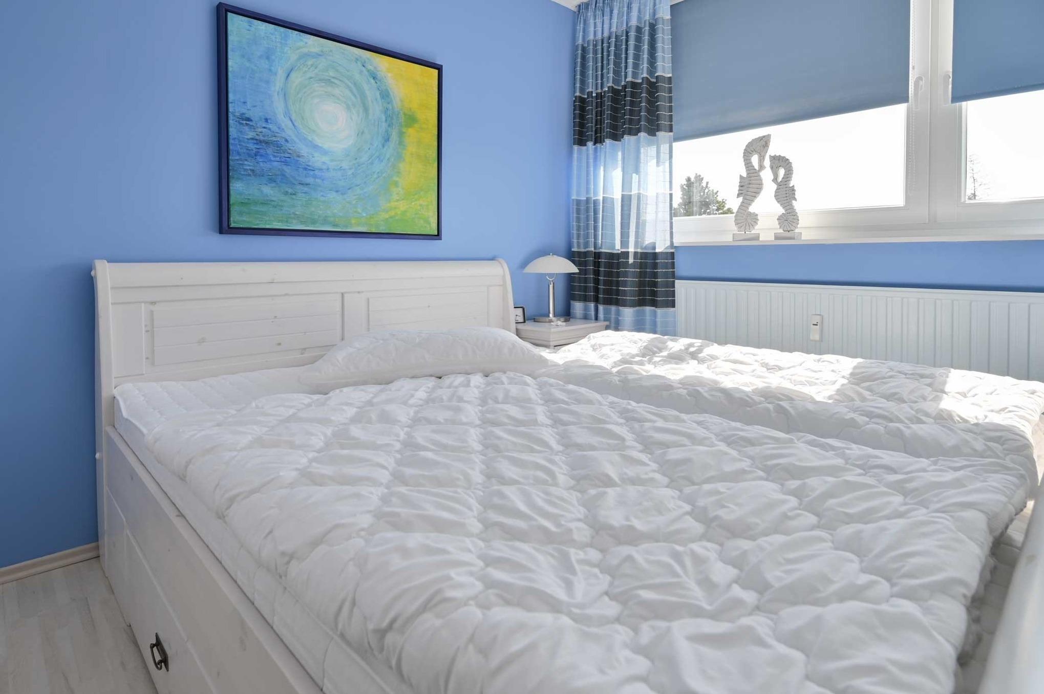 - ein Schlafzimmer mit großem Komfortdoppelbett und Kleiderschrank