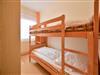 Das kleine Schlafzimmer ist mit einem Etagenbett und Kleiderschrank eingerichtet.