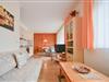 Das Wohn-Schlafzimmer ist mit eine Sofaecke, TV-Möbel mit Flachbild-TV, einem Esstisch mit 4 Stühlen und einer integrierten Küchenzeile ausgestattet.
