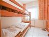 Das kleine Schlafzimmer ist mit einem Etagenbett und Kleiderschrank eingerichtet.