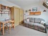 Im Wohn-Schlafraum finden Sie eine Küchenzeile, ein Schlafsofa und einen Essplatz vor.