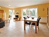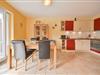 Der geräumige Wohnraum ist mit einem bequemen Sofabereich, TV-Möbel mit Flachbild-TV, einem Esstisch mit 4 Stühlen und einer gut ausgestatteten Küchenzeile eingerichtet.