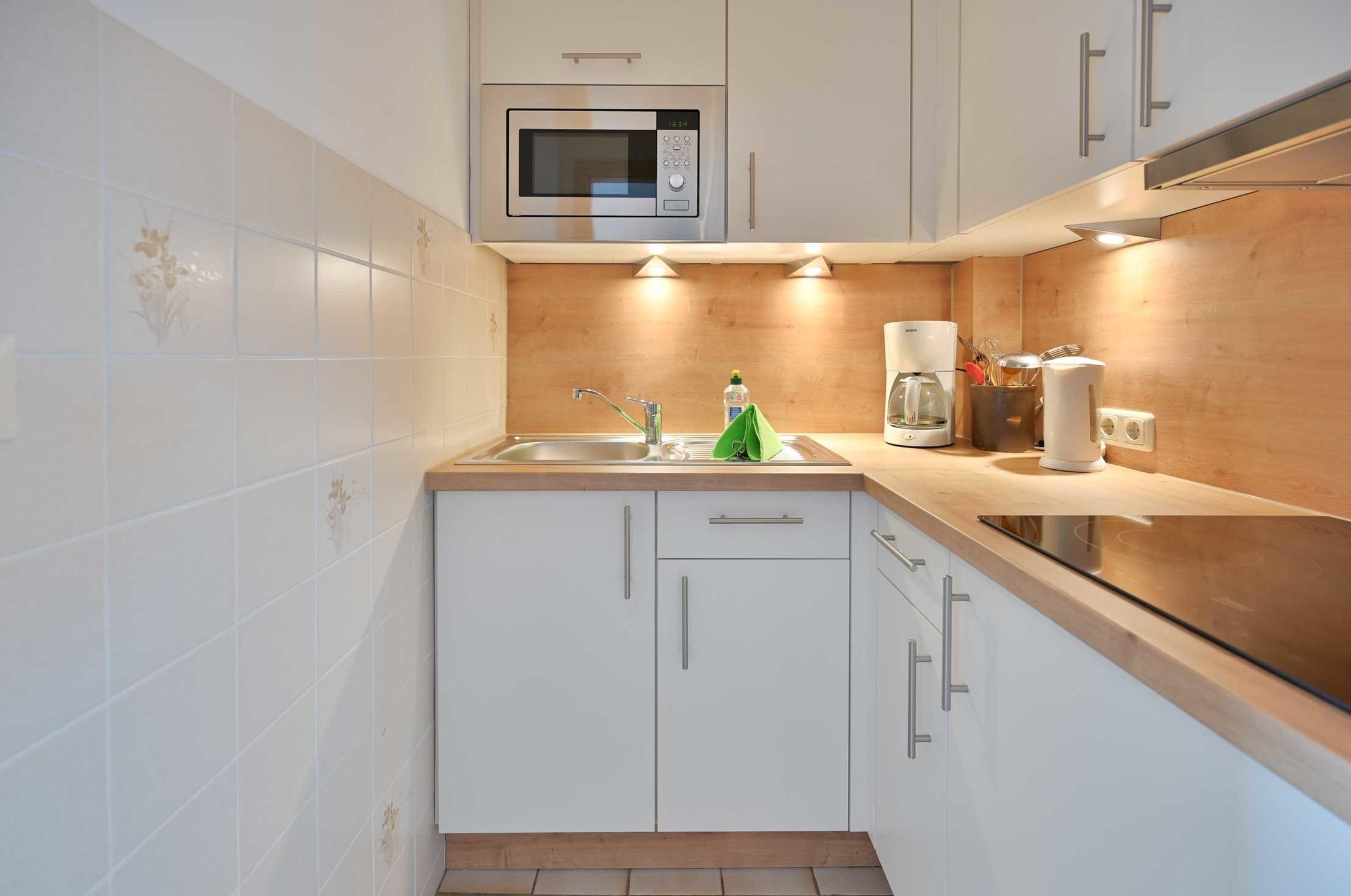 Eine separate Küchenzeile steht Gästen ebenfalls zur Verfügung wie ein hübsches Bad mit Dusche und WC und ein Flur mit Garderobe.