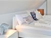 Im Schlafzimmer auf der ersten Etage befindet sich ein gemütliches Doppelbett.