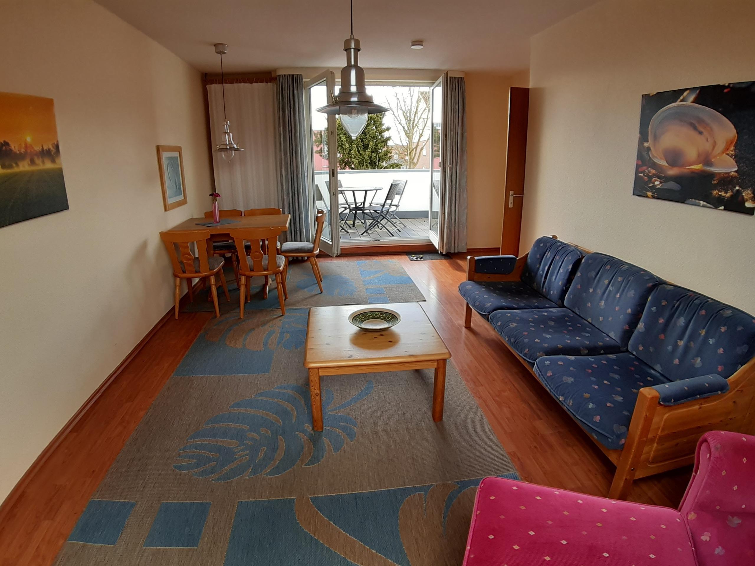 Die helle und freundliche Wohnung (53 qm) befindet sich im 1. Stock vom "Haus Strandgang". Sie verfügt über einen schönen Balkon zum Garten, ein Wohnzimmer (Esstisch, Couchgarnitur und TV), ein Elternschlafzimmer (getrennt stehende Betten), ein Kinderzimmer ( zwei Einzelbetten), eine separate Küche mit Spülmaschine sowie ein Bad mit Dusche/WC.