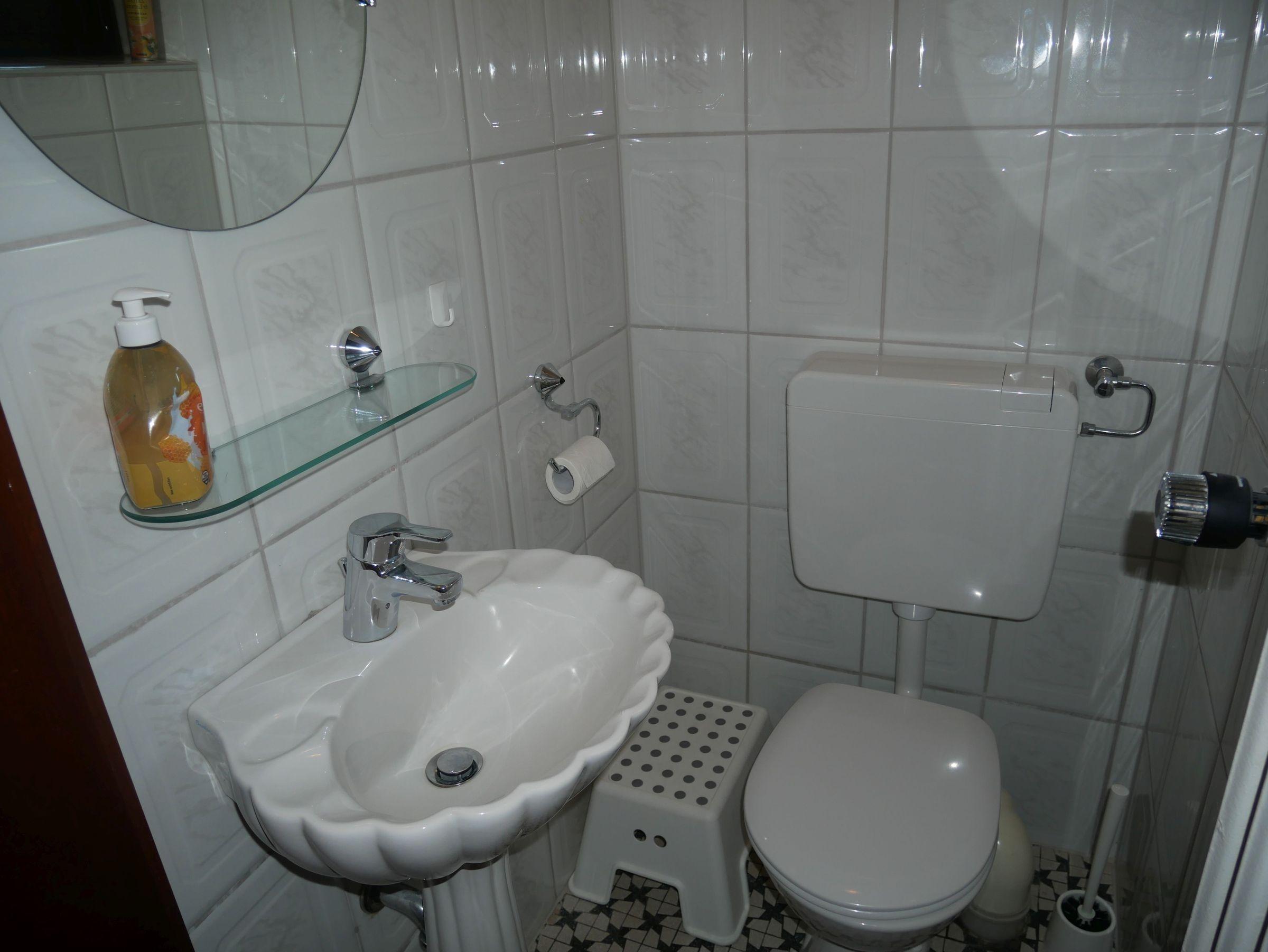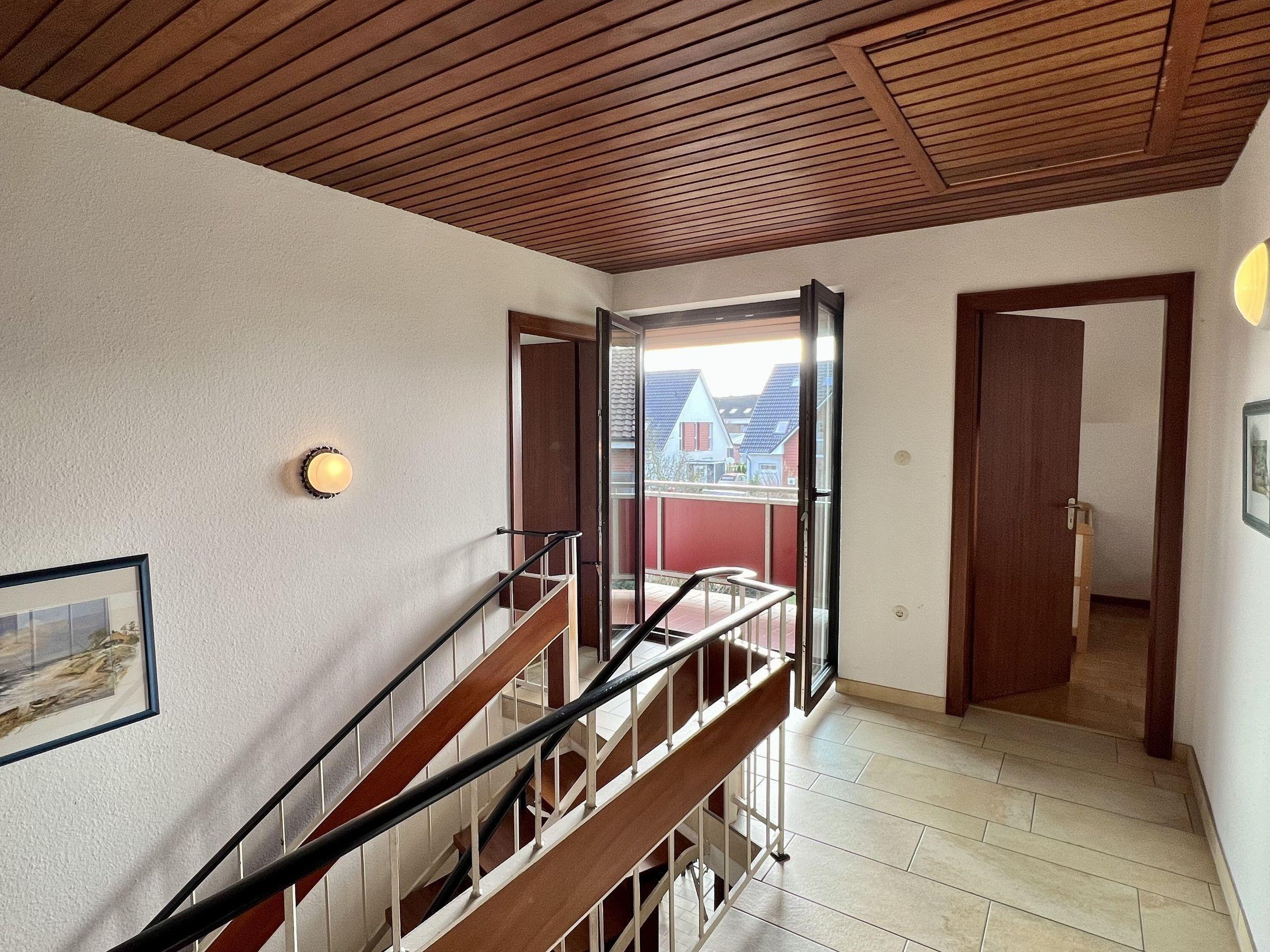 Im Obergeschoss sind drei Schlafräume vorhanden: zwei mit Doppelbetten und einer mit einem Etagenbett, jeweils mit Zugang zu einem Balkon. Ein weiteres Badezimmer mit Dusche rundet das Angebot ab. Waschmaschine und Trockner sind gegen Gebühr gemeinschaftlich nutzbar, und Fahrräder können in einer gemeinsamen Garage untergestellt werden. Zwei PKW-Stellplätze stehen zur Verfügung.