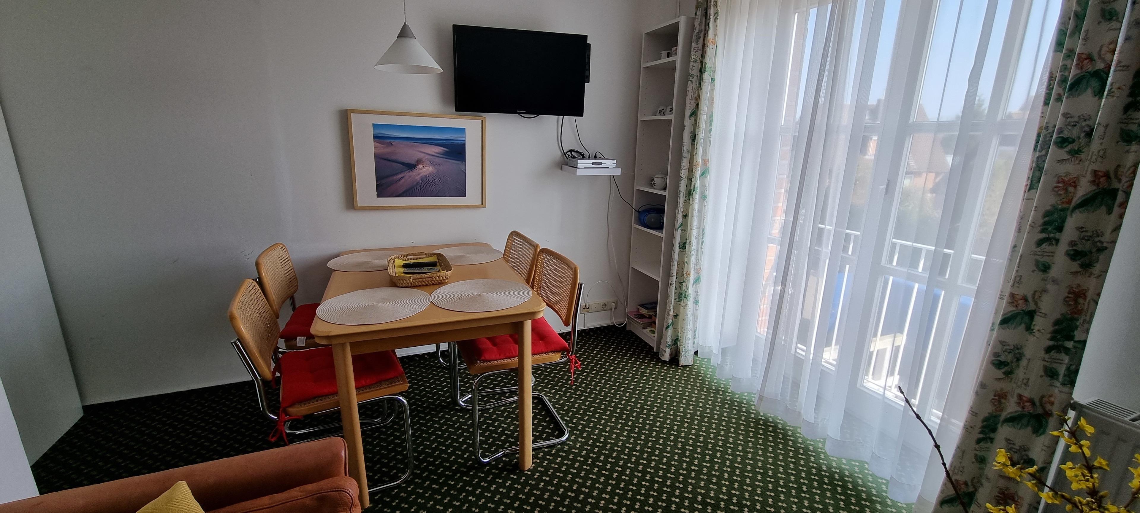 Essbereich im Wohnzimmer mit Essplatz für max. 5 Personen.
