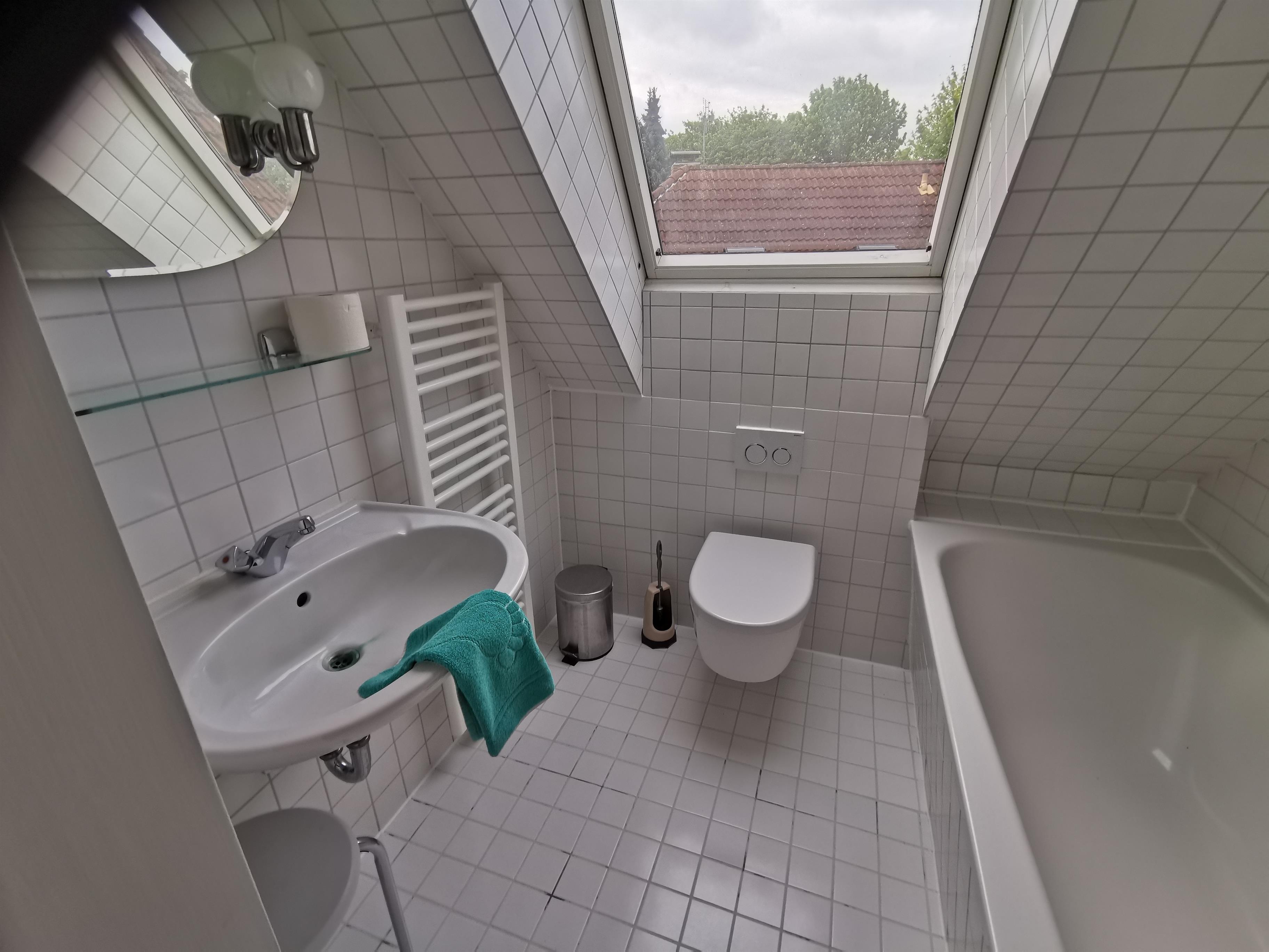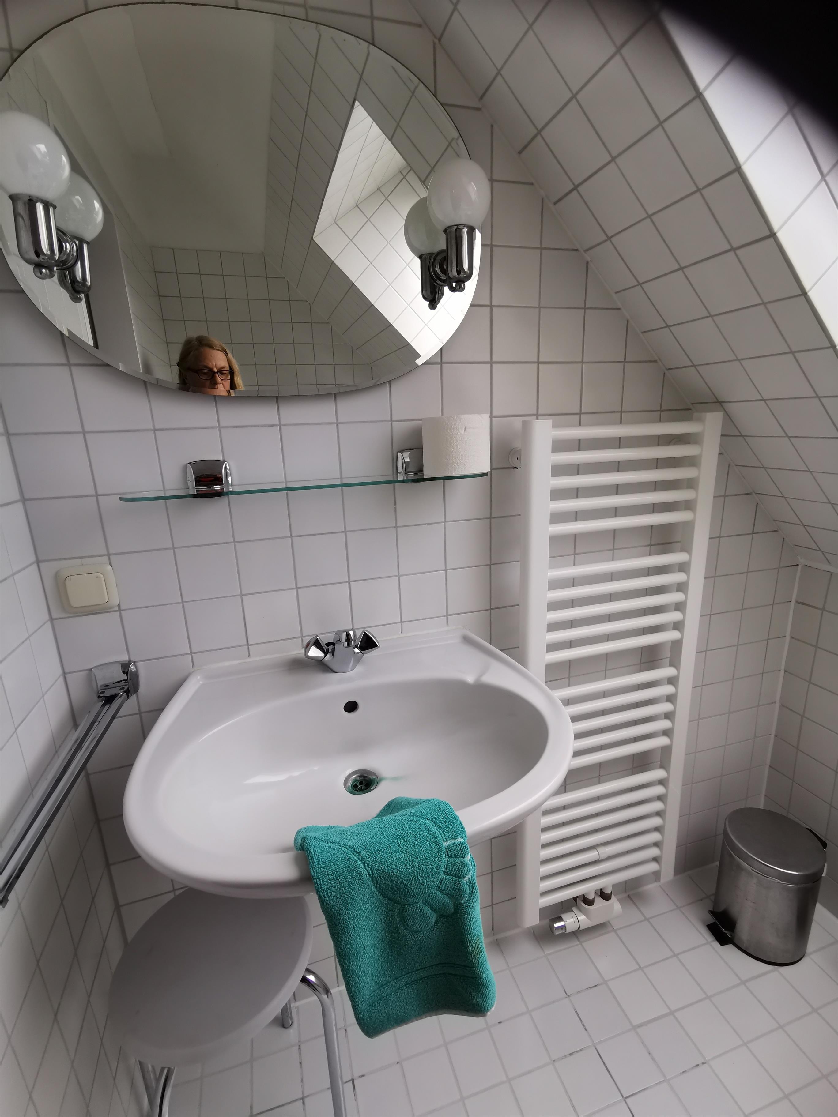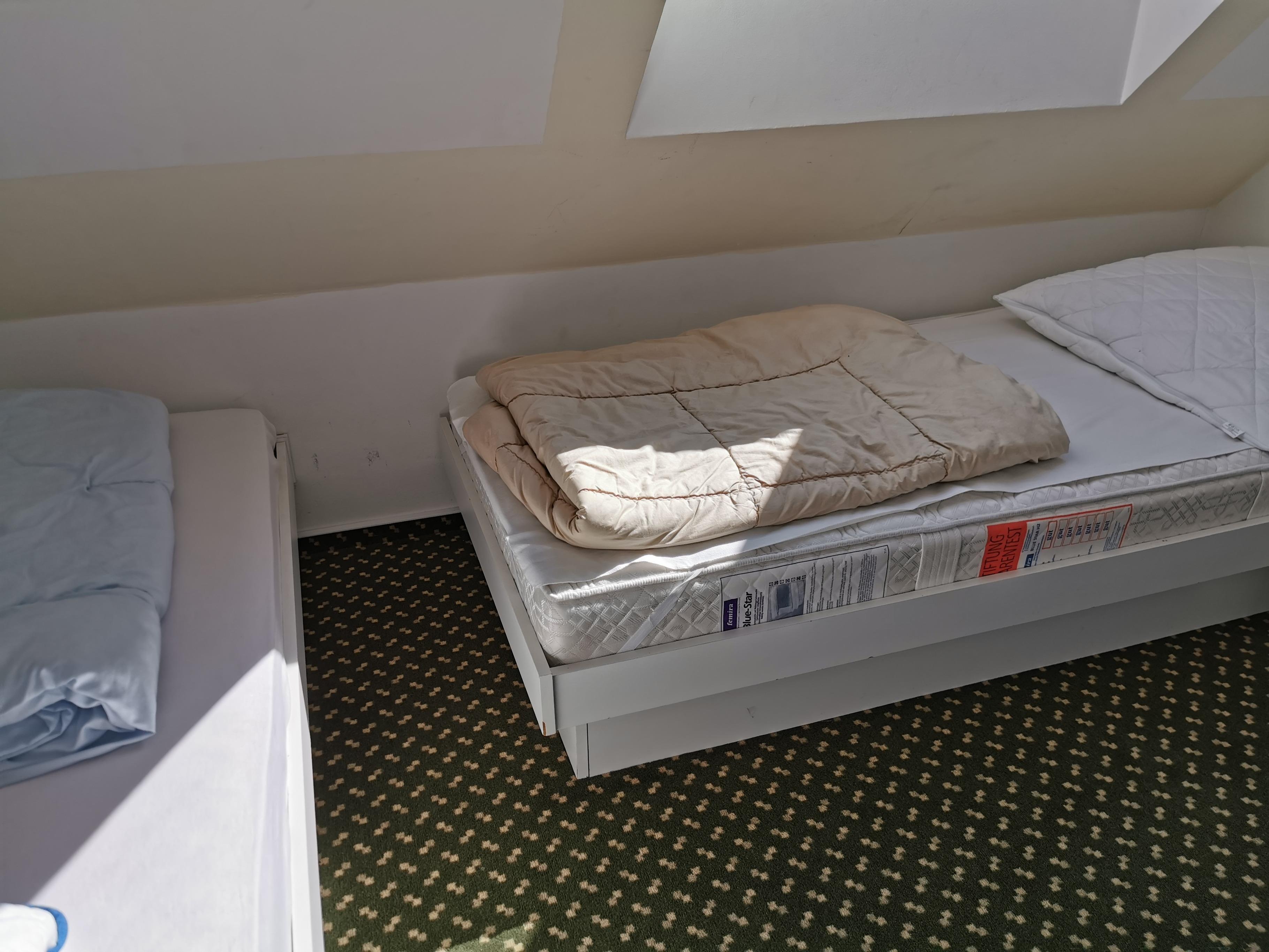 Dreizimmerwohnung ( 44 qm, Grundfläche wegen der Schrägen größer) im 1. Stock , ca. 300 m vom Meer entfernt, 4 Personen.