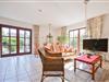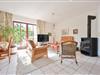 Das Wohnzimmer ist mit einer gemütlichen Couchgarnitur und einem Kamin ausgestattet, der auch bei kalten Temperaturen eine wohlige Wärme vermittelt.