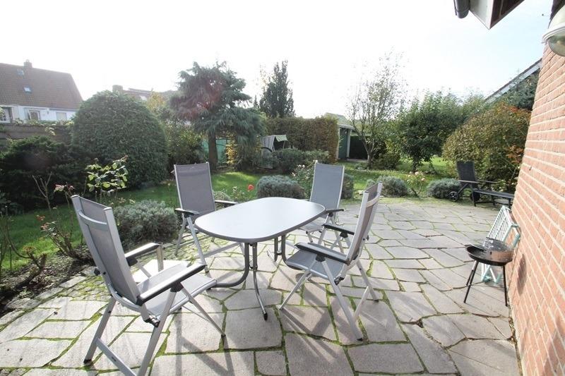 Zur möblierten Terrasse und dem gepflegten Garten gelangt man über einen direkten Zugang in die Wohnung .