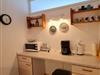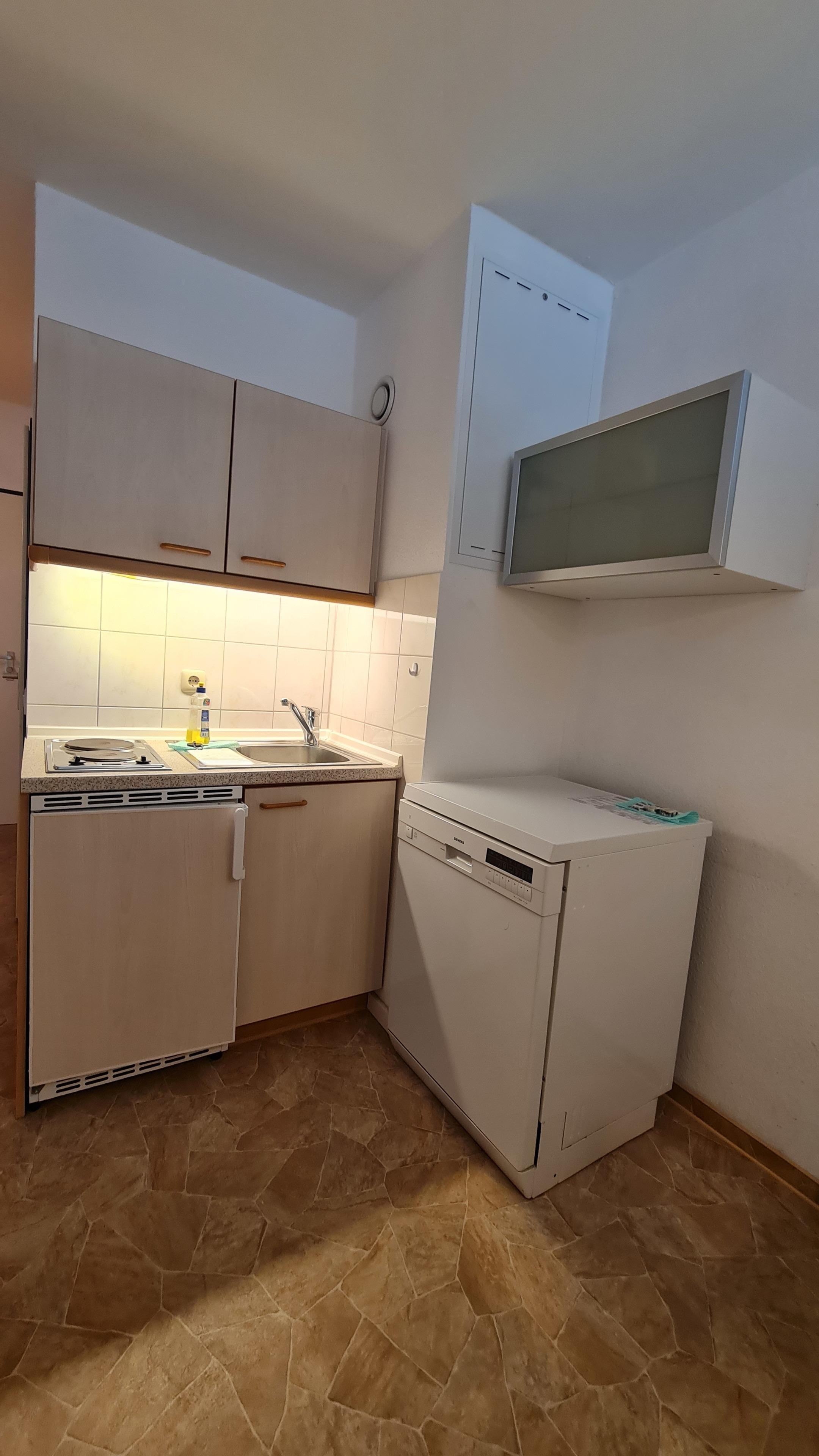 Die Küche verfügt über ein Kochfeld mit zwei Platten, eine Spülmaschine, Mikrowelle