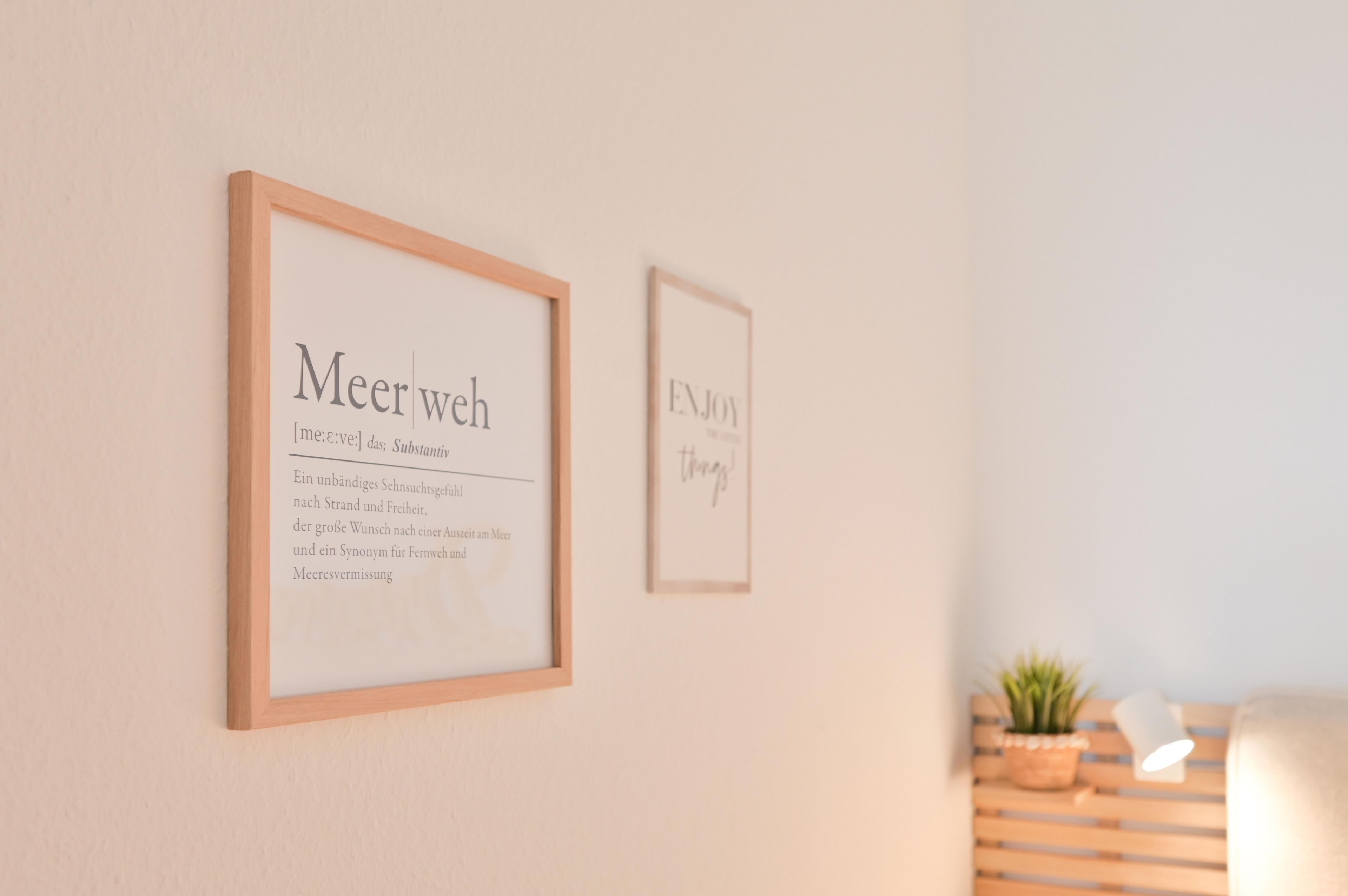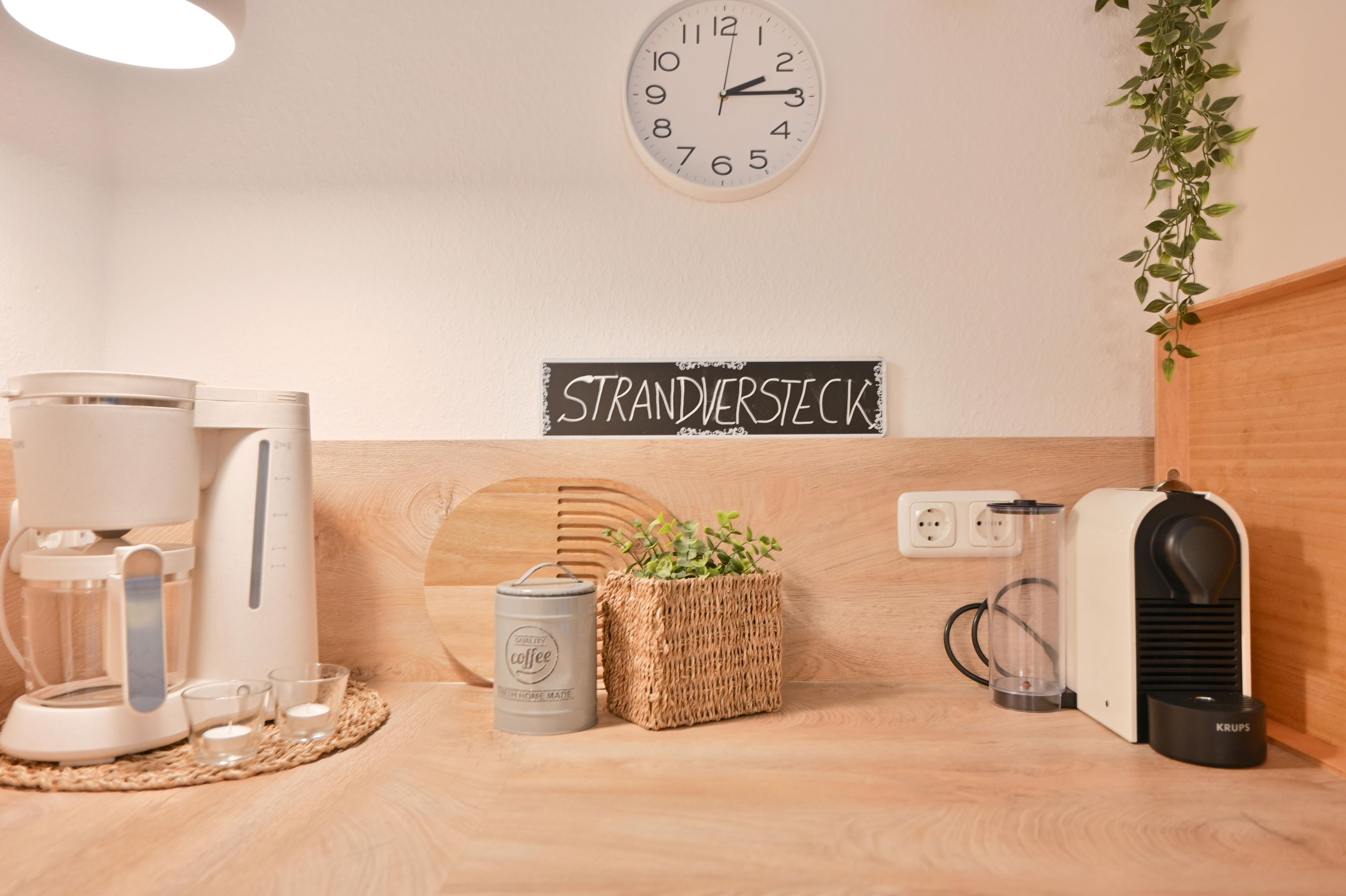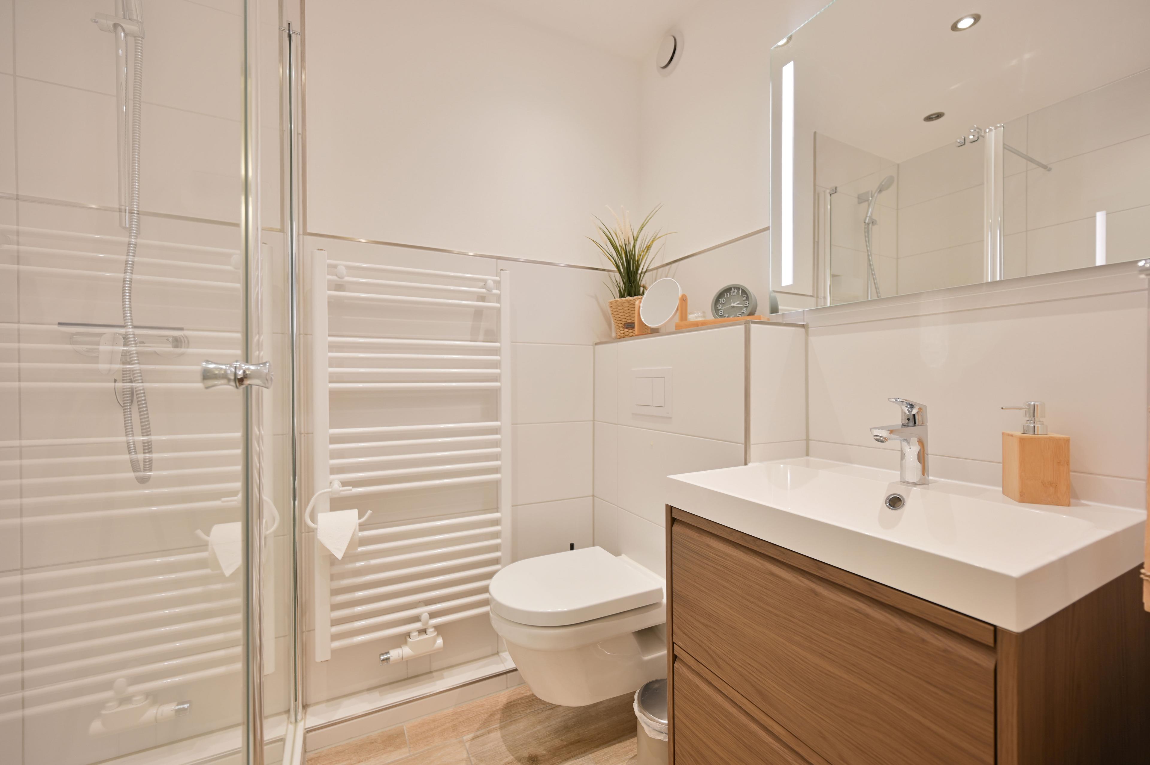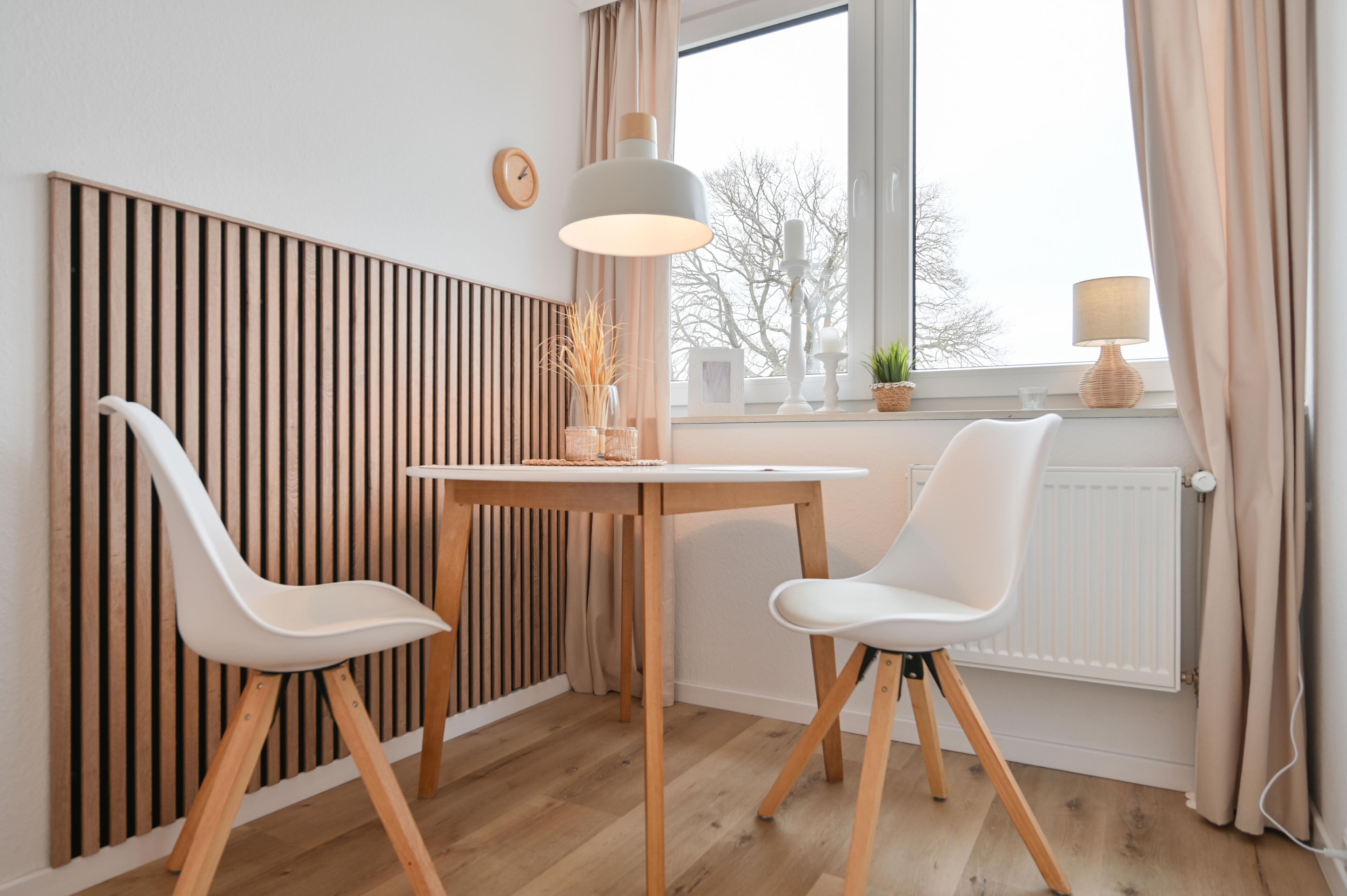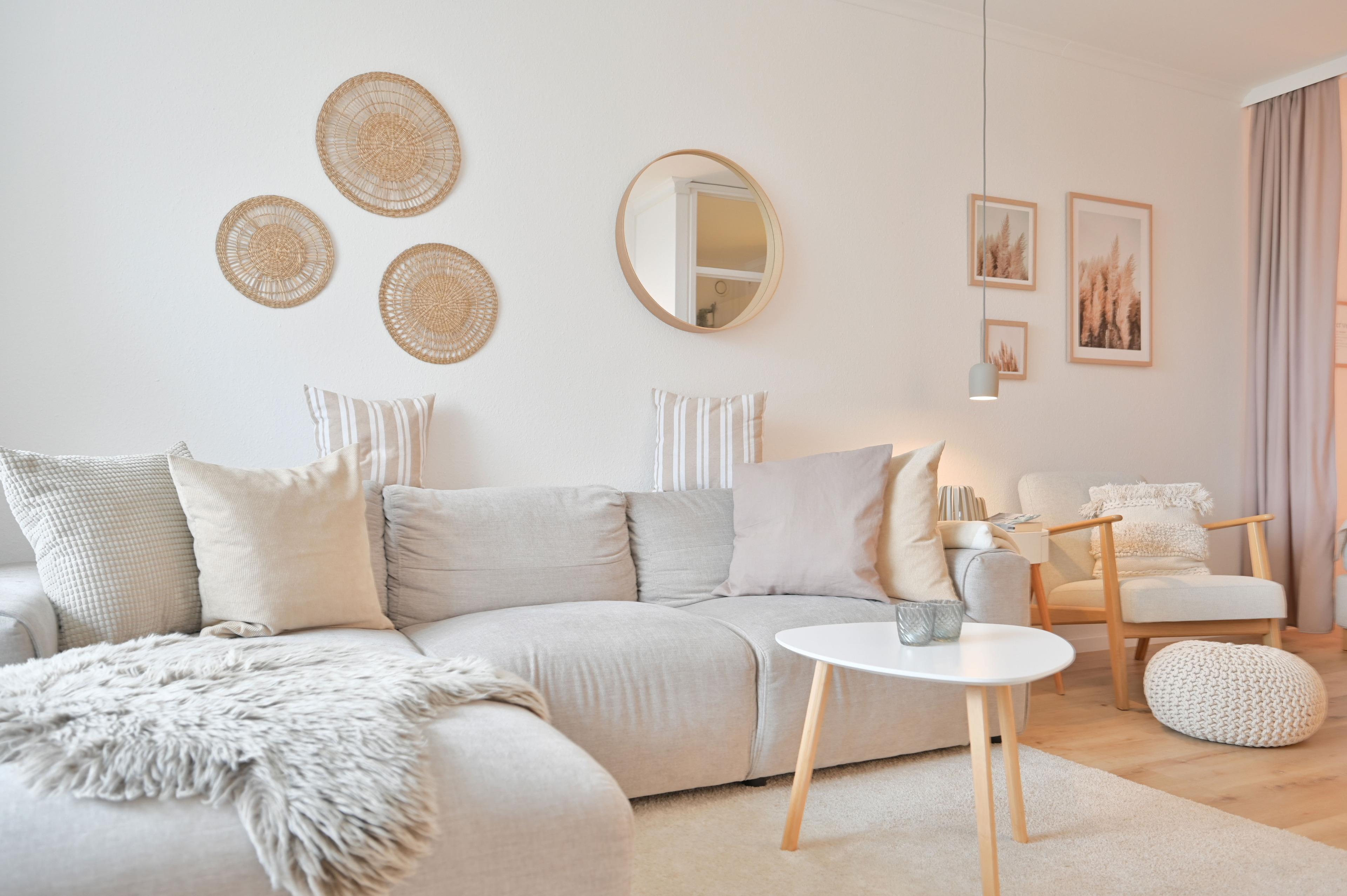 Mit einer toppneuen und modernen Ausstattung begrüßt Sie Ihre Ferienwohnung für die bevorstehenden Urlaubstage. Es erwartet Sie ein heller Wohn- & Schlafbereich, der modern und großzügig eingerichtet ist. Machen Sie es sich auf der Couch oder im Boxspringbett (160 cm) des optisch abgetrennten Schlafbereichs gemütlich. Die im Flur integrierte, geräumige neue Küche ist perfekt mit nahezu allen Annehmlichkeiten (Spülmaschine, Kühlschrank mit Gefrierfach von Liebherr, Induktionsherd mit BORA Dunstabzug, AEG Backofen mit Mikrowelle) ausgestattet und lädt zum Kochen ein- wenn Sie möchten. Das tolle neue Bad ist mit einer geräumiger Walk-in-Dusche (150 cm) mit großer Glasabtrennung inkl. Tür, einem Waschtisch, Handtuchheizkörper, WC und beleuchtetem Spiegel ausgestattet. Des Weiteren verfügt die Wohnung über ein kleines Esszimmer mit rundem Tisch, der erhöht auf einem Podest am Fenster steht. In diesem Raum stehen auch die Kleiderschränke für Sie zur Verfügung. WLAN steht zur Verfügung.
