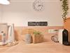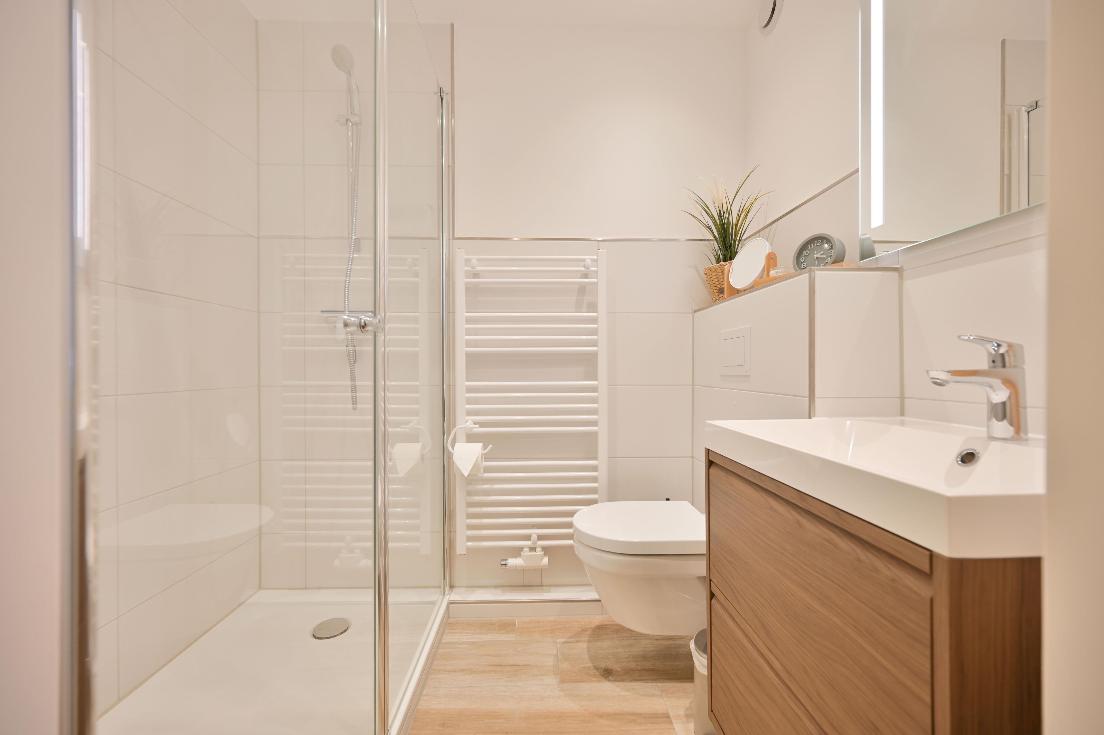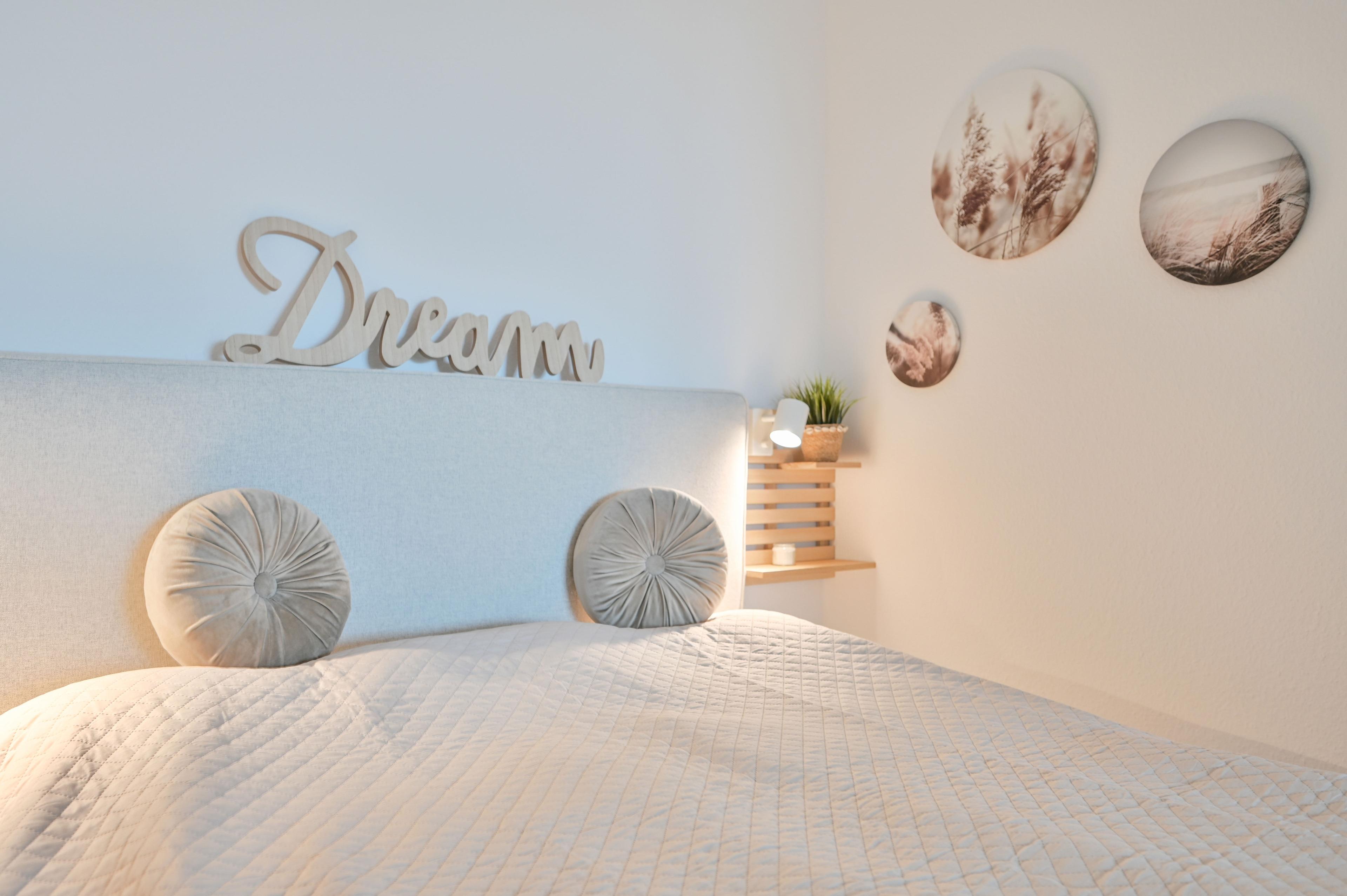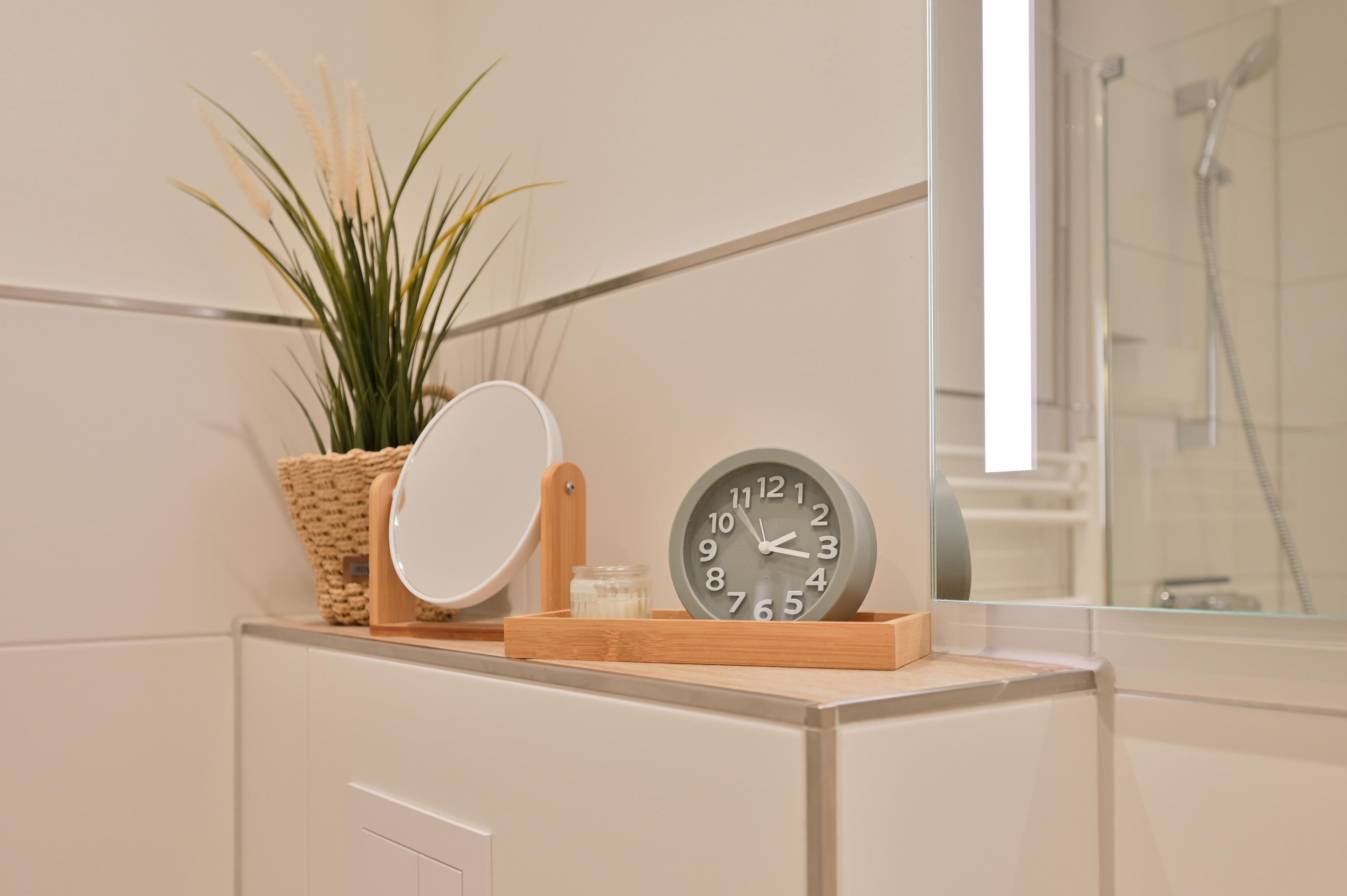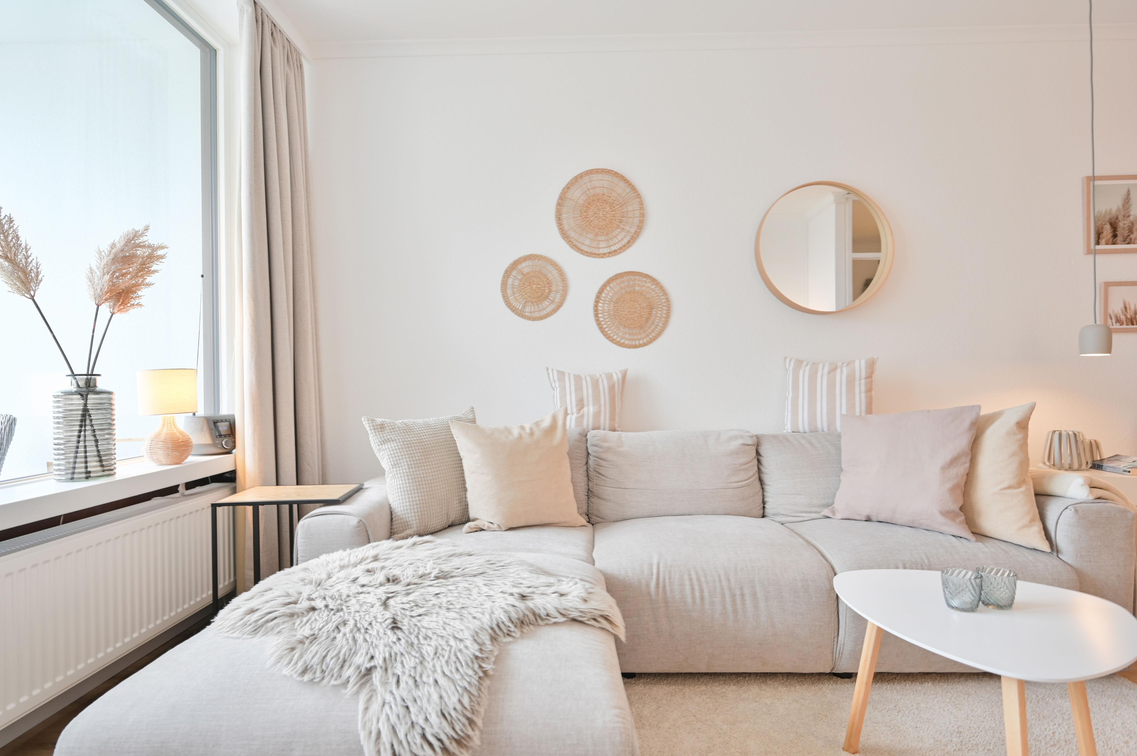 Mit einer toppneuen und modernen Ausstattung begrüßt Sie Ihre Ferienwohnung für die bevorstehenden Urlaubstage. Es erwartet Sie ein heller Wohn- & Schlafbereich, der modern und großzügig eingerichtet ist. Machen Sie es sich auf der Couch oder im Boxspringbett (160 cm) des optisch abgetrennten Schlafbereichs gemütlich. Die im Flur integrierte, geräumige neue Küche ist perfekt mit nahezu allen Annehmlichkeiten (Spülmaschine, Kühlschrank mit Gefrierfach von Liebherr, Induktionsherd mit BORA Dunstabzug, AEG Backofen mit Mikrowelle) ausgestattet und lädt zum Kochen ein- wenn Sie möchten. Das tolle neue Bad ist mit einer geräumiger Walk-in-Dusche (150 cm) mit großer Glasabtrennung inkl. Tür, einem Waschtisch, Handtuchheizkörper, WC und beleuchtetem Spiegel ausgestattet. Des Weiteren verfügt die Wohnung über ein kleines Esszimmer mit rundem Tisch, der erhöht auf einem Podest am Fenster steht. In diesem Raum stehen auch die Kleiderschränke für Sie zur Verfügung. WLAN steht zur Verfügung.