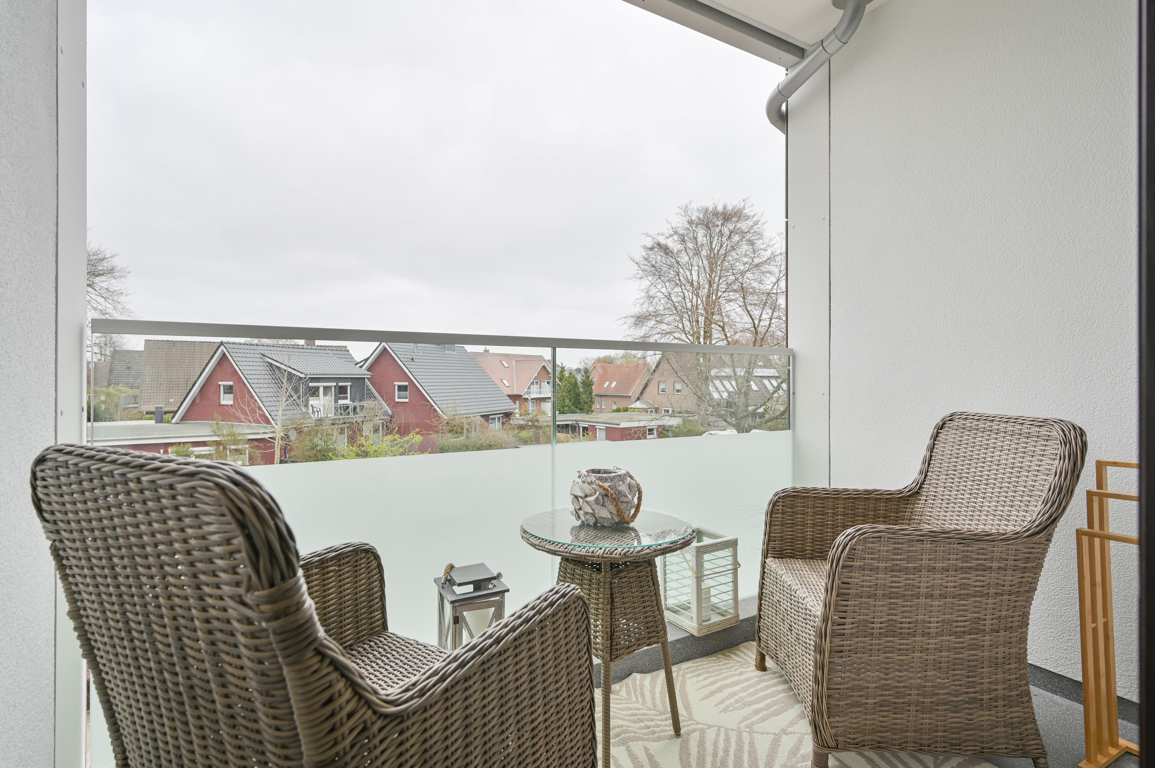 Diese strandnahe 1,5-Zimmer-Ferienwohnung erwartet Sie mit bis zu 2 Personen im Haus 4 der Wohnanlage im Leuchtturmweg. Im 2. Stock befindet sich Ihr 43 m² großes Feriendomizil - genießen Sie Ihren Urlaub und die Abendstunden auf der mit gemütlichen Korbmöbeln ausgestatteten Nord-Ost Loggia.