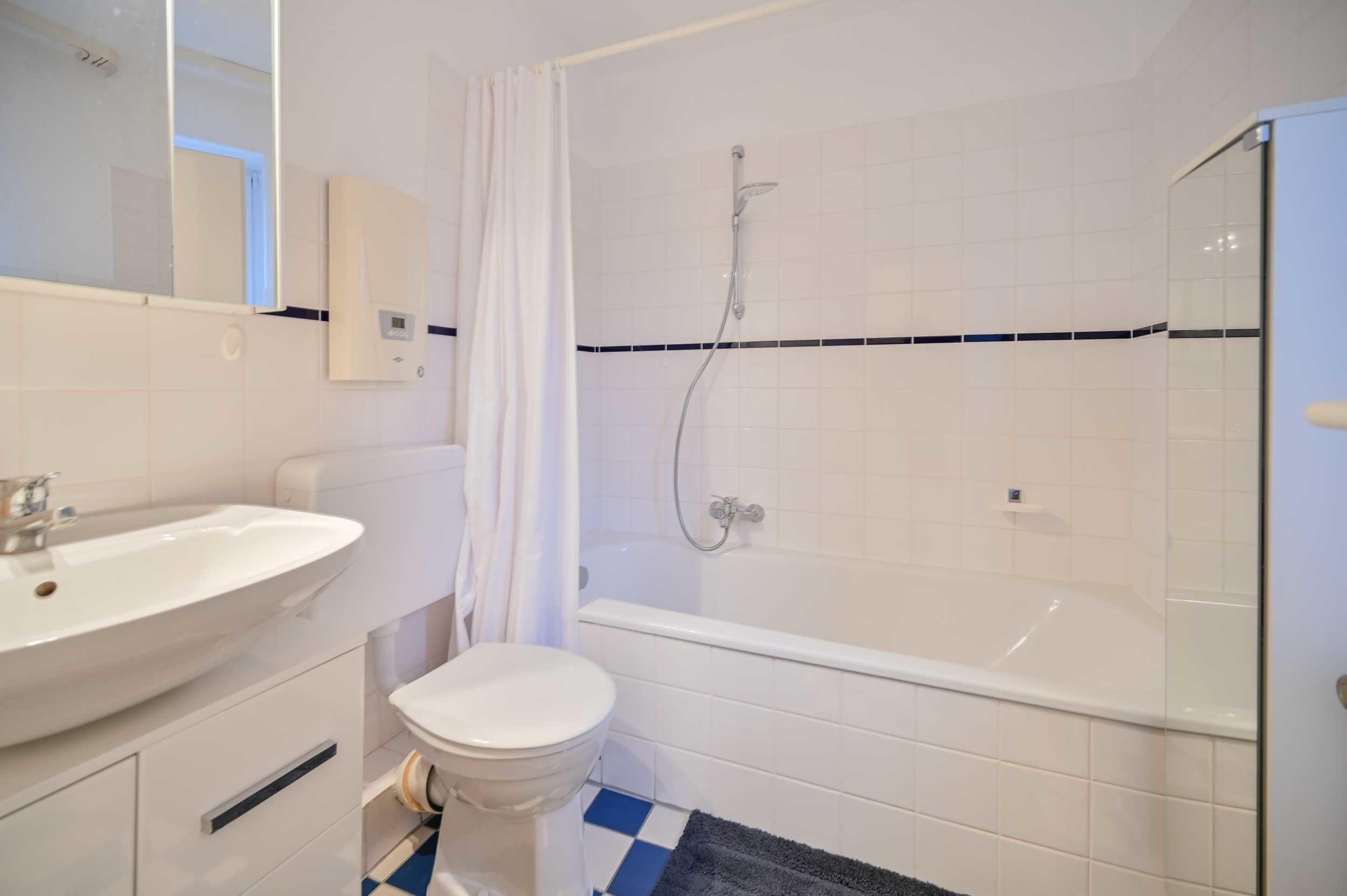 Das separate Badezimmer verfügt über Badewanne, Waschtisch, WC und Außenfenster.