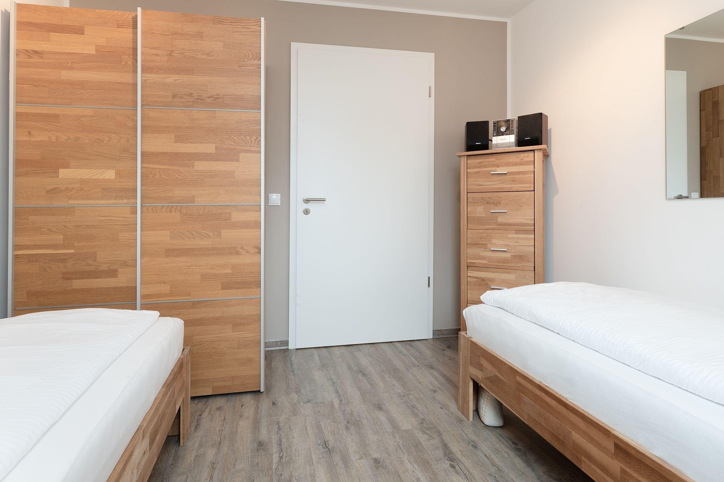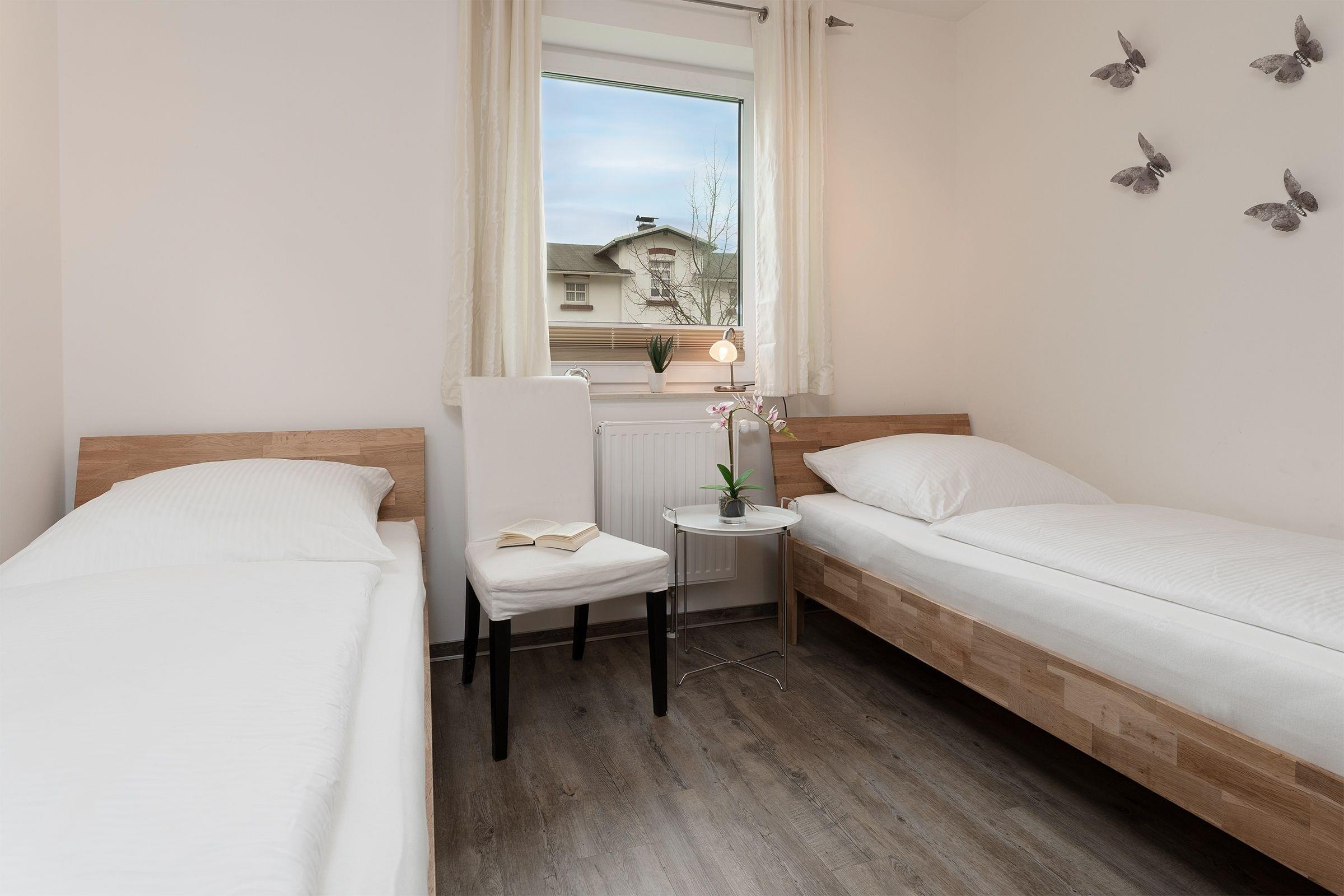 Schlafzimmer 2: 2 Einzelbetten (2x 90x200 cm), Verdunkelung (Plissees)
