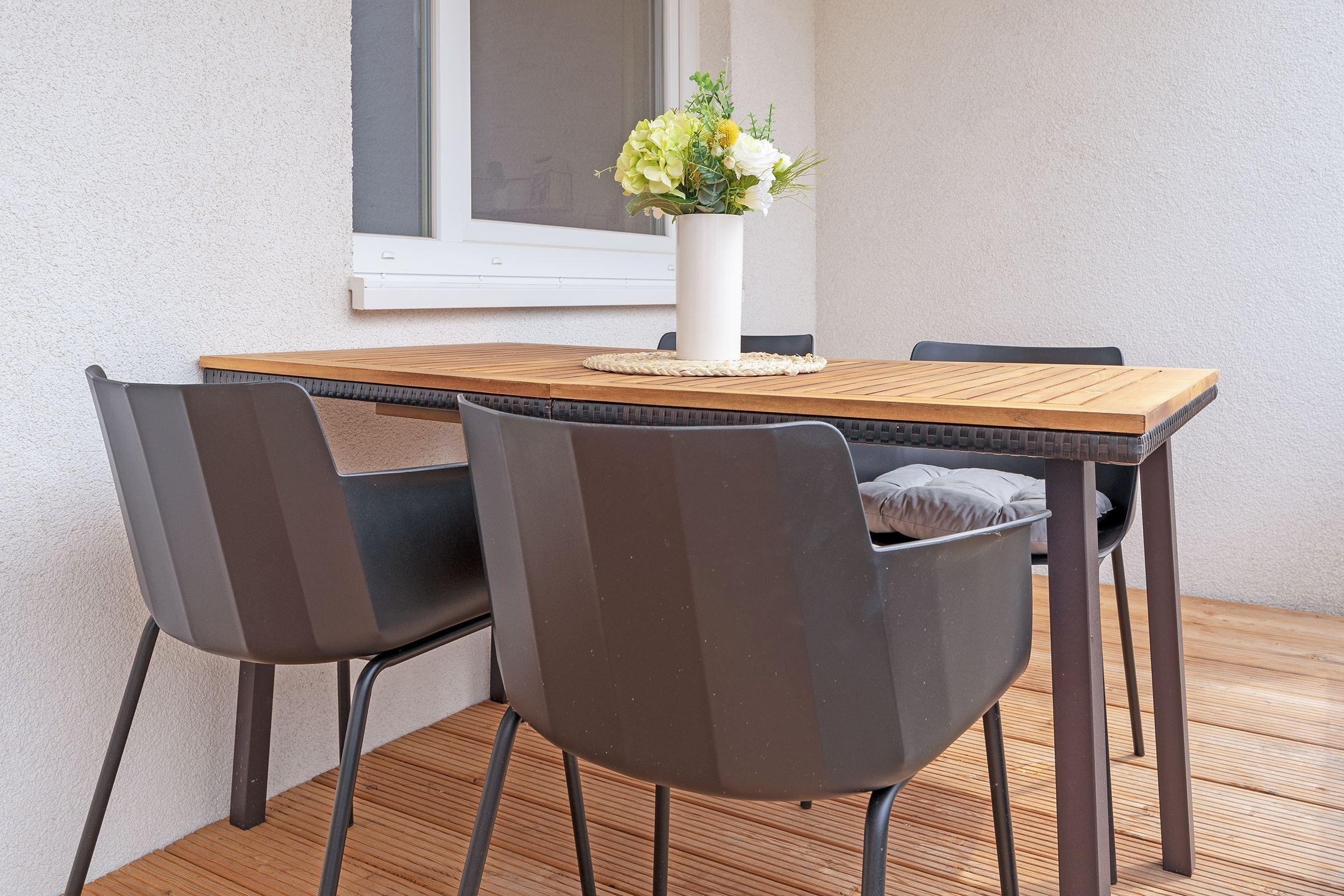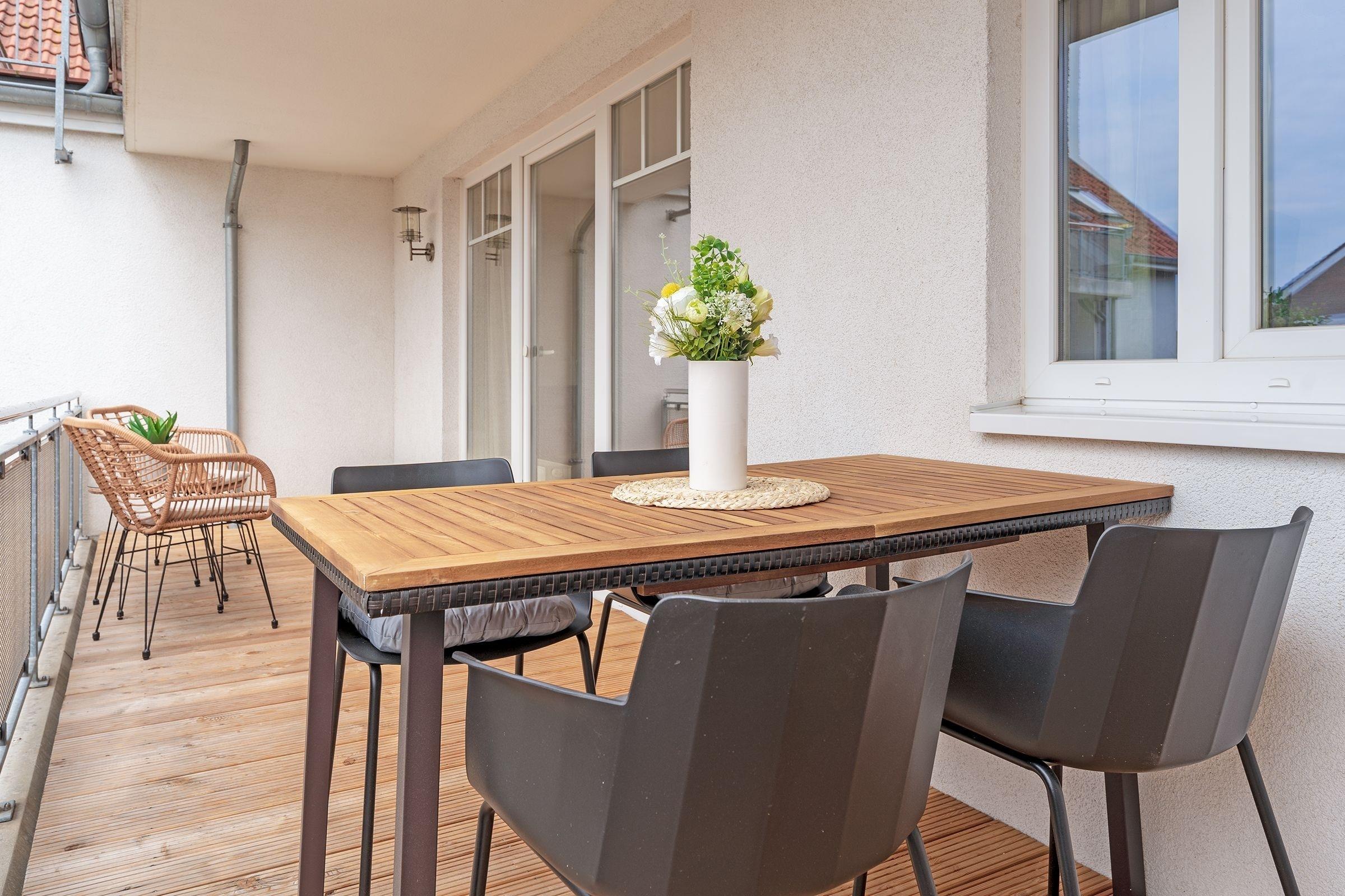 Moderne Ferienwohnung Marlene mit Balkon und Meerblick in Kellenhusen, ideal für erholsamen Ostseeurlaub.