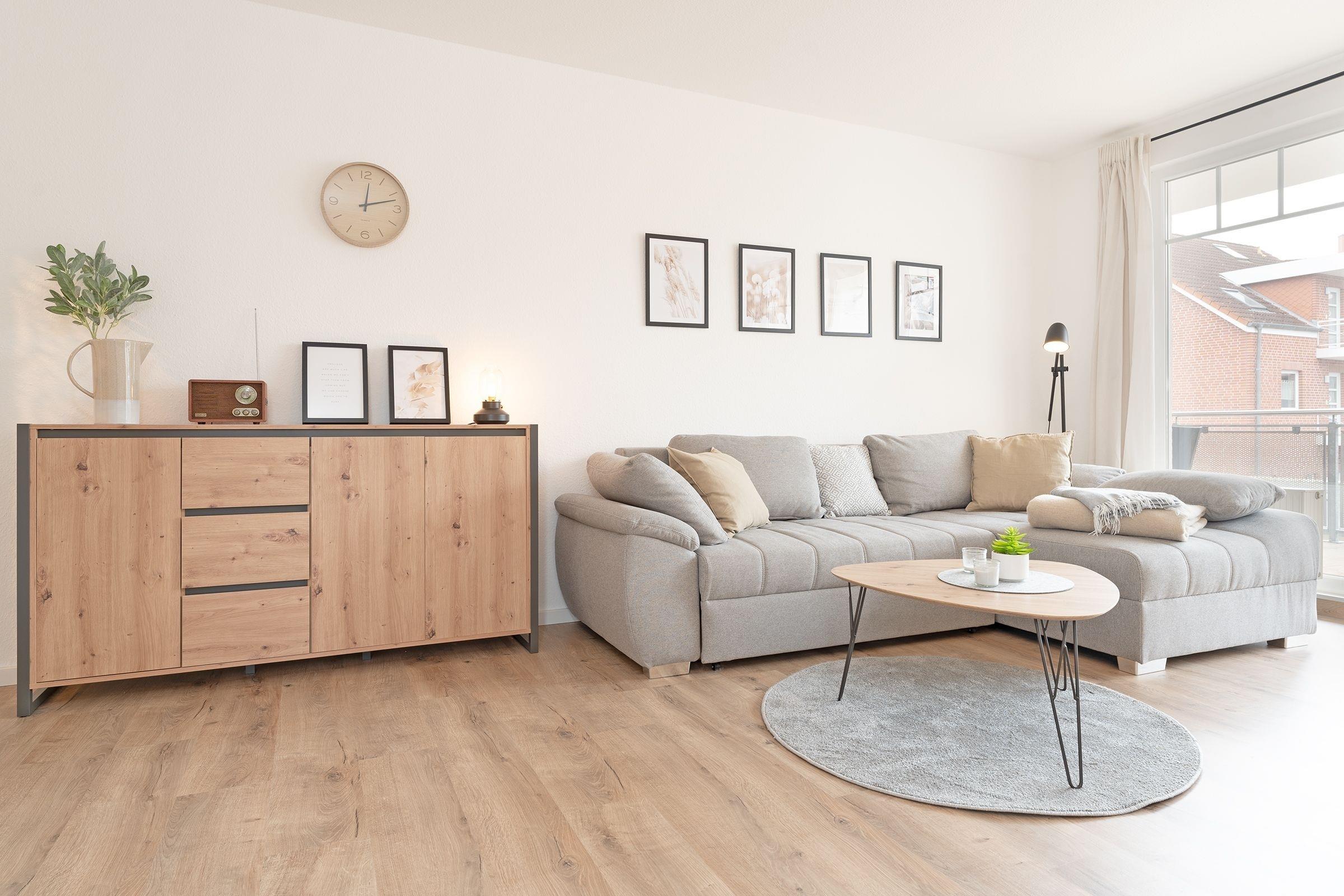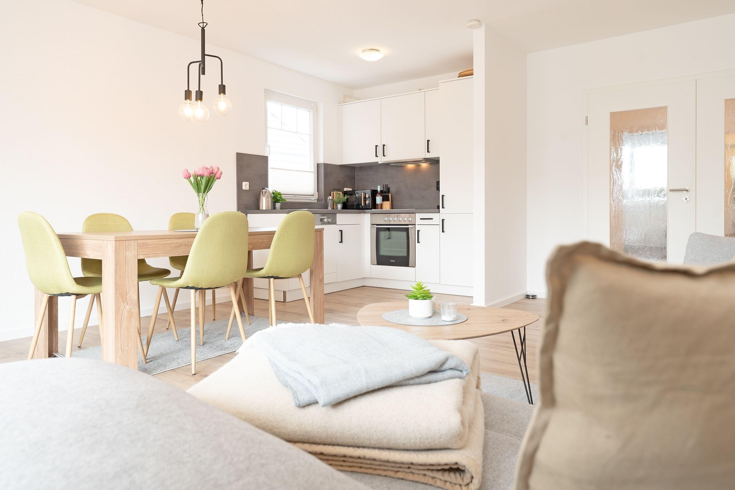 Urlaub am Meer mit Ostseeflair – genießen Sie die schönsten Tage des Jahres in dieser komfortablen Ferienwohnung mit Süd-Balkon. Das großzügige Wohnzimmer verfügt über eine gemütliche TV- und Essecke. Kommen Sie herein und nehmen Sie Platz, Ihr Urlaub kann beginnen. Ob nun gemütlich auf dem Sofa, am Tisch oder auf dem sonnigen Balkon. Hier kann man wunderbare Stunden verbringen. Auch die offene, gut ausgestattete Küche mit Spülmaschine kann sich sehen lassen. Hobby-Köche werden sicher mit Freude ihre Menüs zaubern. Für die Nacht stehen Ihnen zwei Schlafzimmer zur Verfügung: In dem einen befindet sich ein Doppelbett (2x 90x200 cm) sowie ein weiteres TV-Gerät und in dem anderen Raum stehen zwei Einzelbetten (je 90x200 cm). Das Bad hat Tagesicht und verspricht einen guten Start in den Tag. Im Haus stehen auch einTrockner für Sie zur Verfügung. Die Waschmaschine befindet sich im Badezimmer.