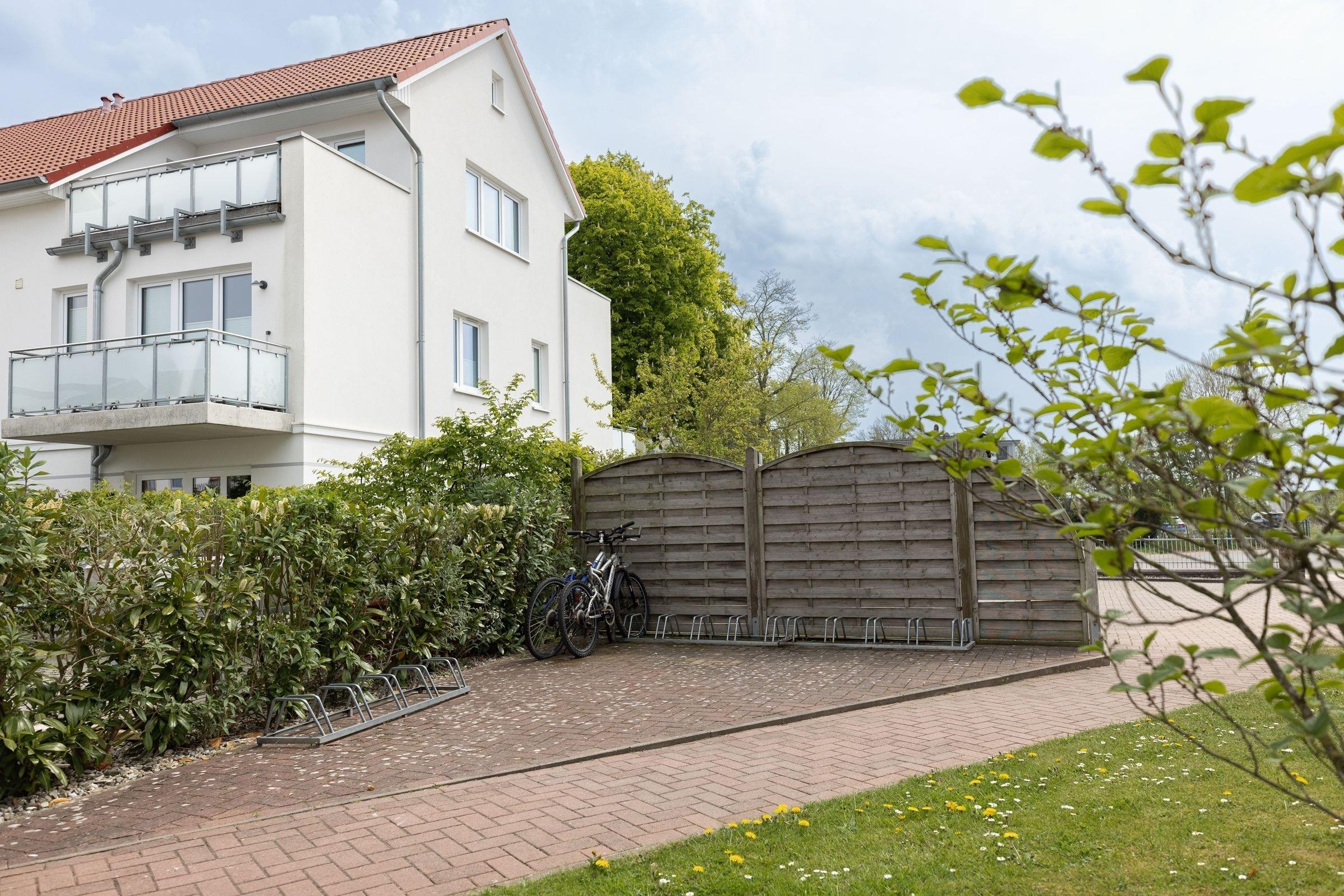 Für Ihr Fahrzeug ist ein PKW-Außenstellplatz direkt am Haus reserviert. Und für Ihre mitgebrachten Fahrräder sind Ständer am Haus vorhanden, die von der Straße nicht einsehbar sind.