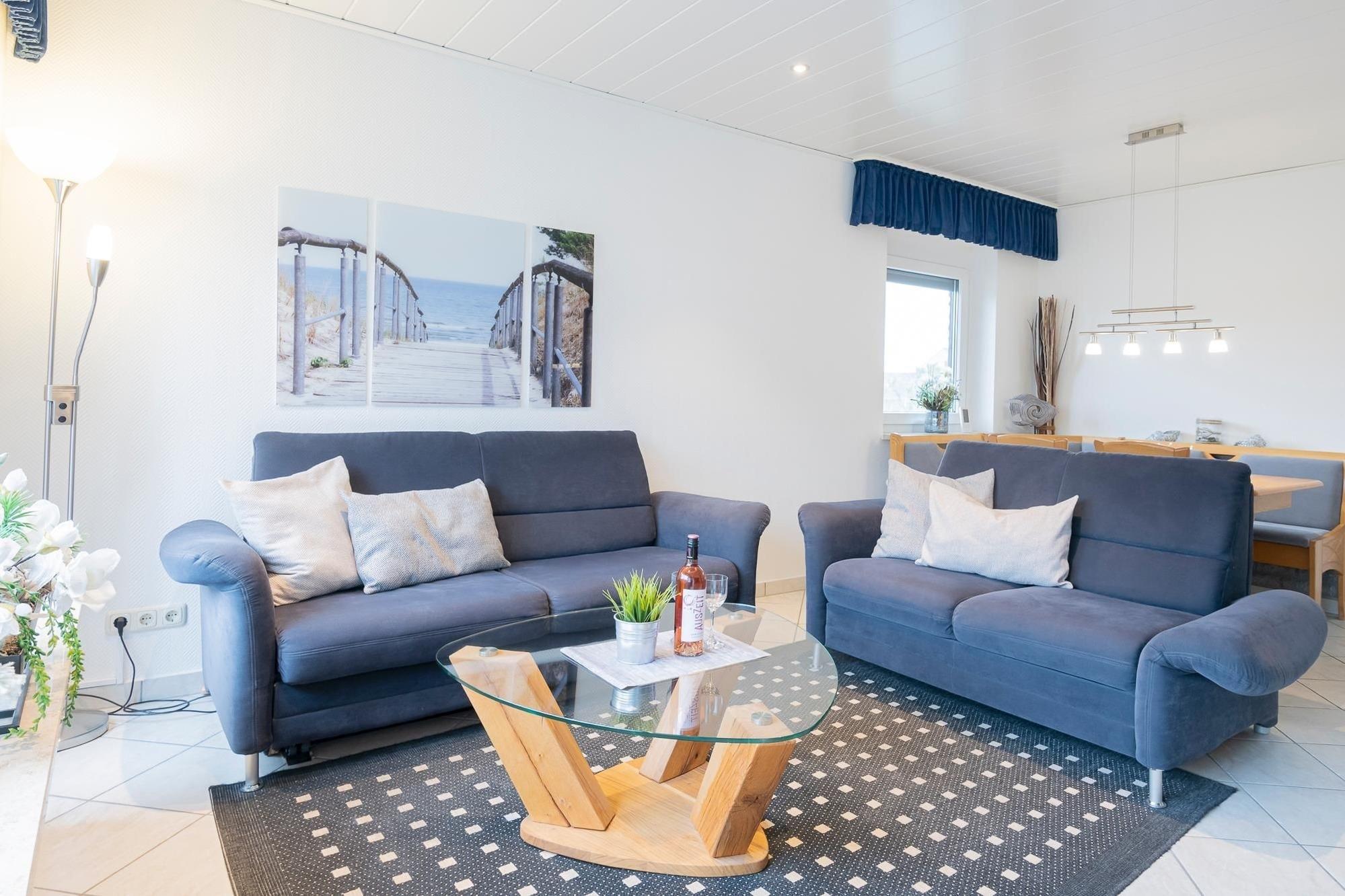 Strandnahe 3-Zimmer-Ferienwohnung im 1. Stock in Kellenhusen für bis zu 4 Personen mit 2 separaten Schlafzimmern, Balkon und einer Wohnfläche von ca. 56 m².