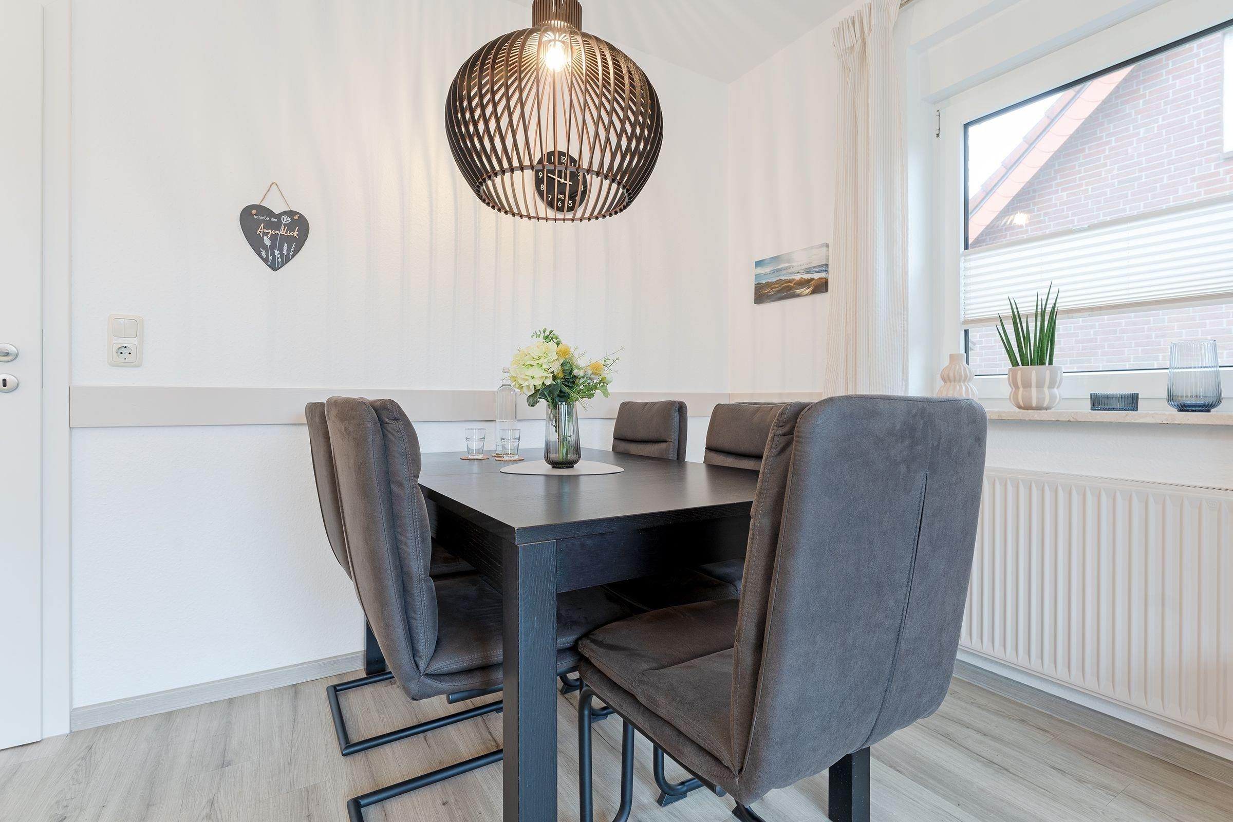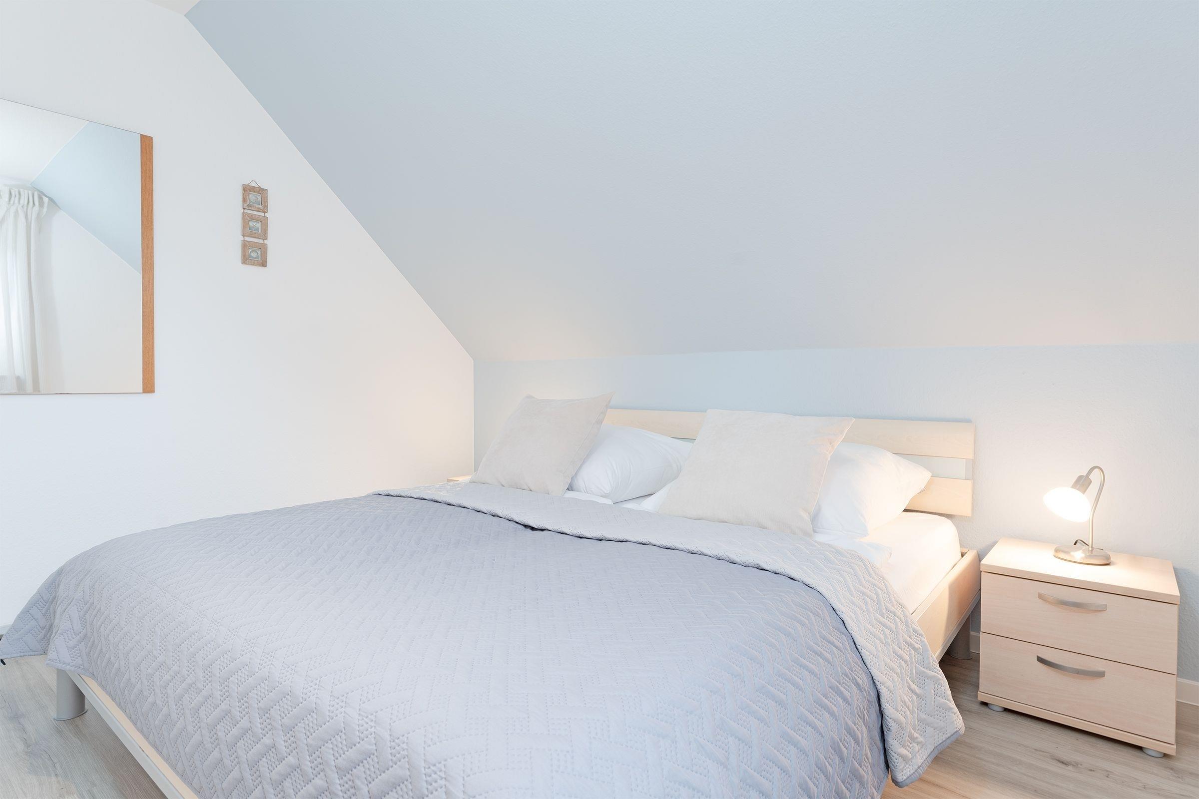 Einen abwechslungsreichen Urlaub können Sie in diesem komfortablen Feriendomizil zwischen Wald und Wellen im Heisterbusch 13d erleben. Im Erdgeschoss empfängt Sie das Wohnzimmer mit einer großzügigen Sofalandschaft. Machen Sie es sich hier gemütlich, für Unterhaltung sorgen ein TV-Gerät sowie eine Stereo-Anlage. Wunderbar können Sie auch auf der sonnigen, möblierten Terrasse entspannen. Wie wäre es am Nachmittag mit einer Runde Federball im eingezäunten Garten? Auch kann man hier abends herrlich Grillen. Die separate Küche mit Spülmaschine bietet sämtliche Annehmlichkeiten, um sich im Urlaub wunderbar selbst zu versorgen. Weiterhin befinden sich im Erdgeschoss ein Duschbad. Im Dachgeschoss stehen Ihnen zwei Schlafräume zur Verfügung: In dem einen Zimmer steht ein Doppelbett (2x 90x200 cm), das andere Zimmer ist mit drei getrennt stehenden Betten (je 90x200 cm) ausgestattet. Auch in diesem Stockwerk gibt es ein Duschbad.