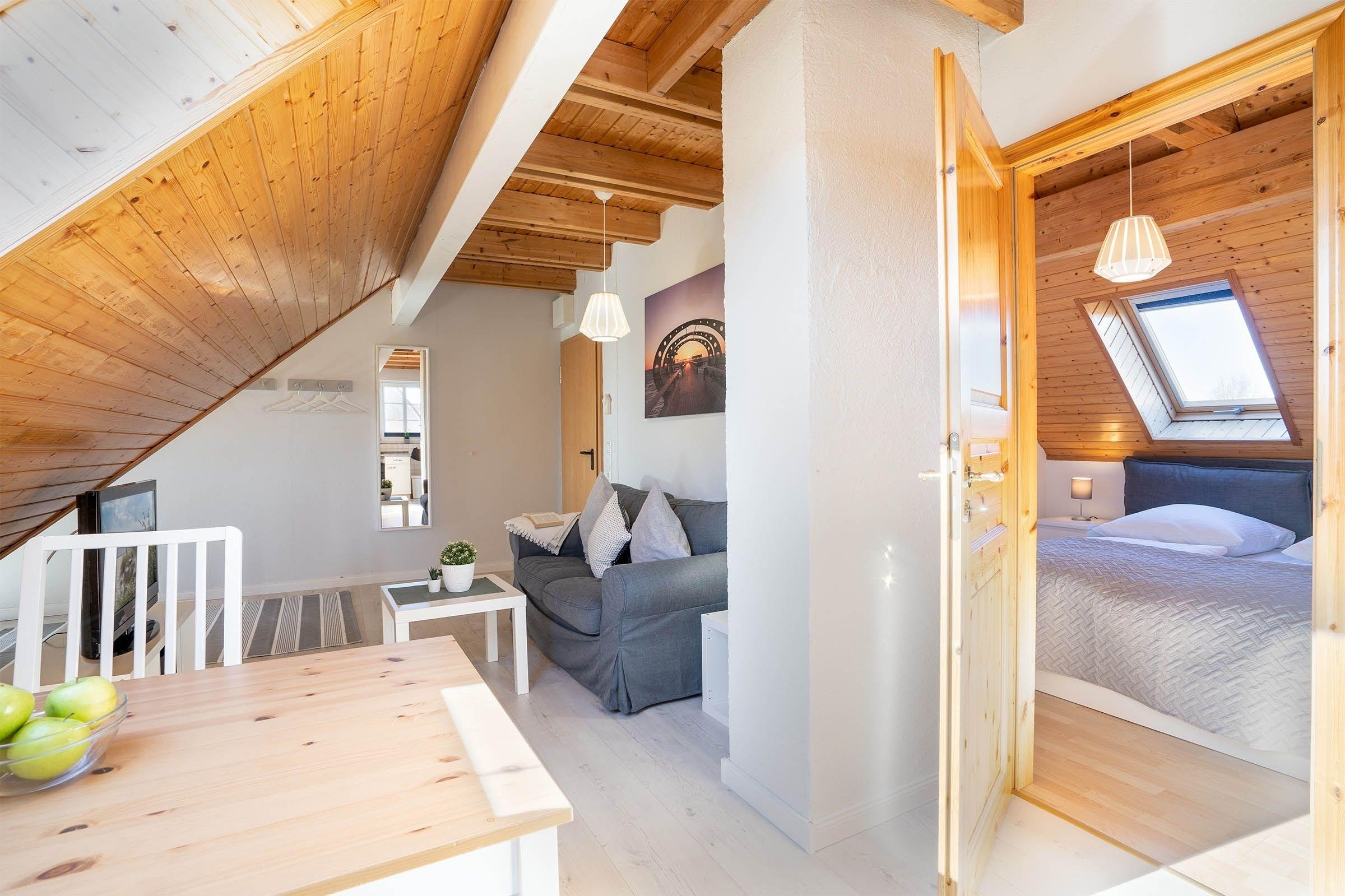 Stylische 2-Zimmer-Ferienwohnung im Dachgeschoss für bis zu 2 Personen mit Balkon und einer Wohnfläche von ca. 35 m².