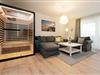 Ihr Urlaub kann beginnen! In dieser modernen Wohnung werden Sie Ihre freie Zeit garantiert genießen: Ob in der gemütlichen Sofalandschaft mit TV im Wohnzimmer oder auf dem sonnigen Balkon – Ihr Feriendomizil bietet Ihnen verschiedene Möglichkeiten zu entspannen. Auch die angrenzende Küche wird Ihren Urlaub so angenehm wie nur möglich gestalten. Die durchdachte Ausstattung mit Induktionsherd, Mikrowelle, Nespresso-Maschine und Spülmaschine lässt keine Wünsche offen. Fantastisch träumen werden Sie bestimmt in den separaten Schlafzimmern, in denen jeweils ein Doppelbett (2x 90x200 cm) steht. Zusätzlich befindet sich in einem Schlafzimmer ein Fernseher. Ein modernes Duschbad rundet das Angebot ab.