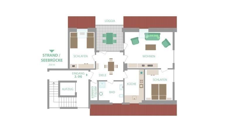 In der modernen Anlage Strandhäuser in der Lindenstraße erwartet Sie diese lichtdurchflutete, moderne Ferienwohnung mit einer Wohnfläche von ca. 74 m², 2 Schlafzimmern und Balkon für bis zu 4 Personen plus Baby im 2. Stock.