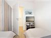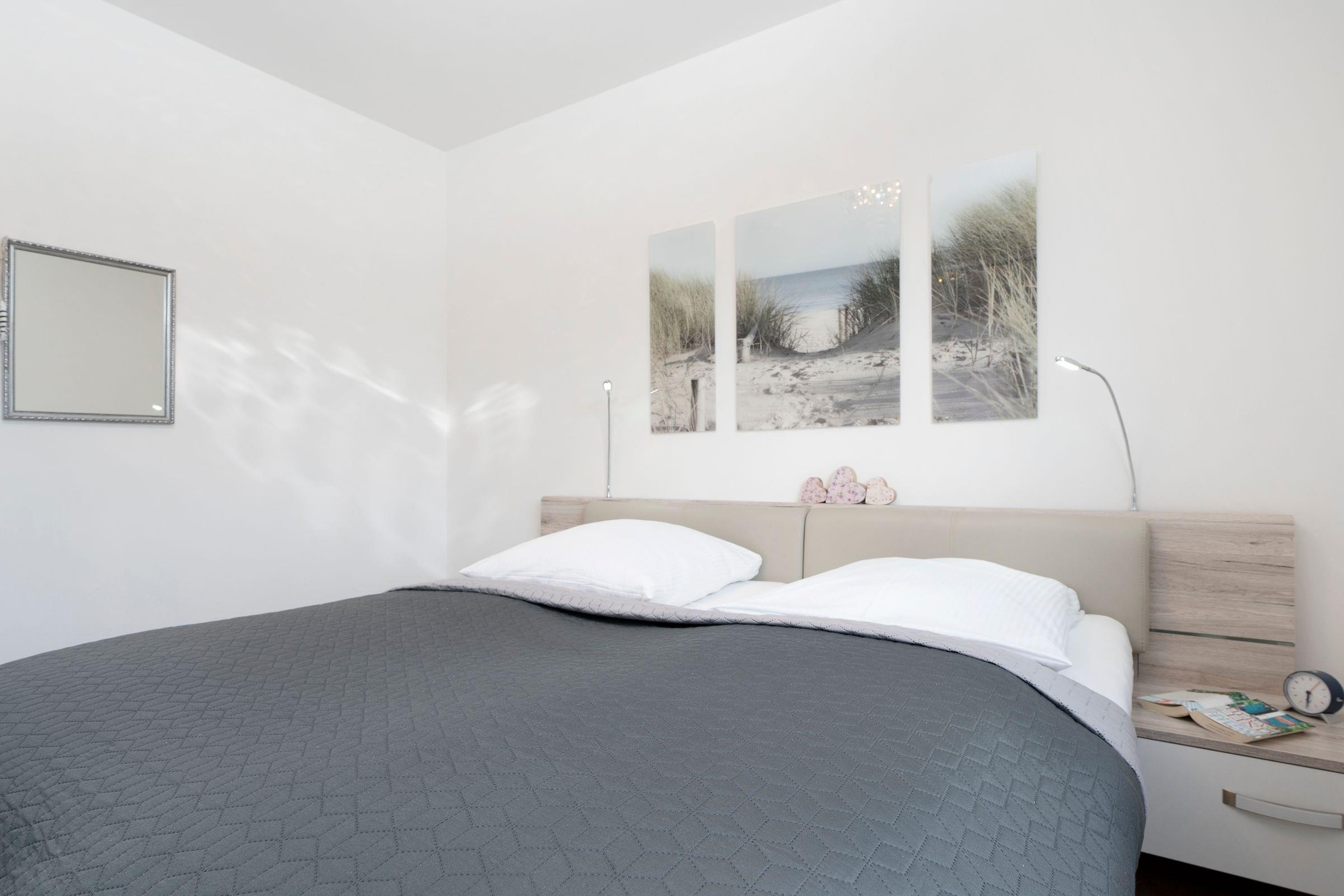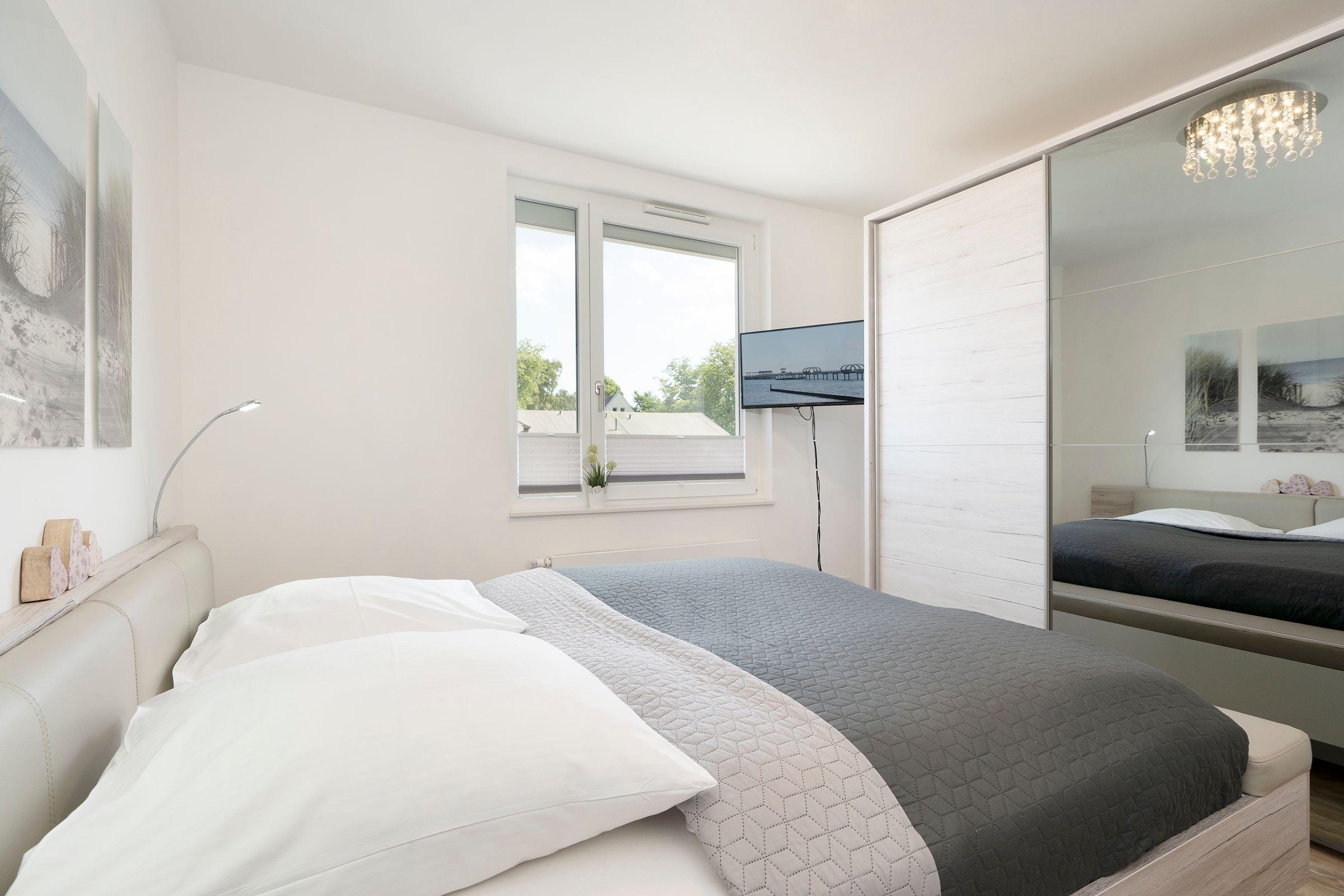 Schlafzimmer: 1 Doppelbett (2x 90x200 cm), TV, Außenrollläden.
