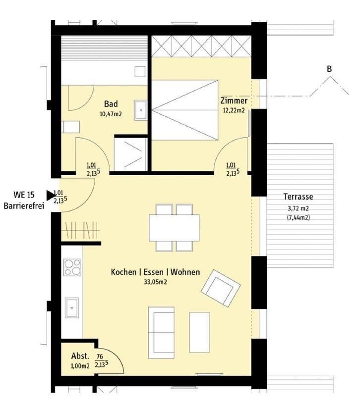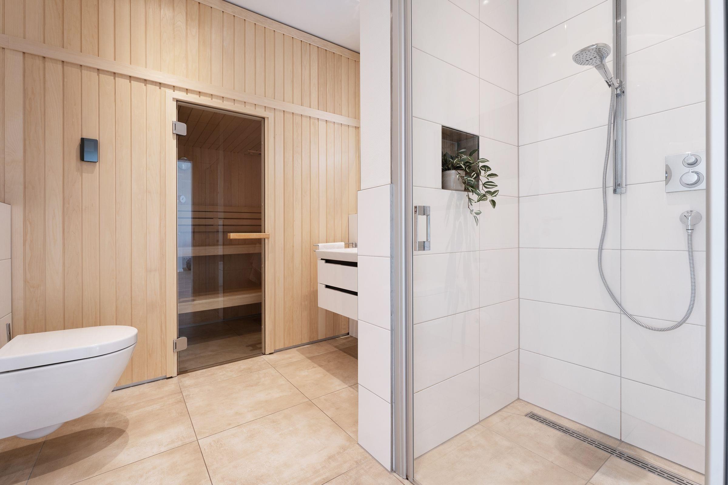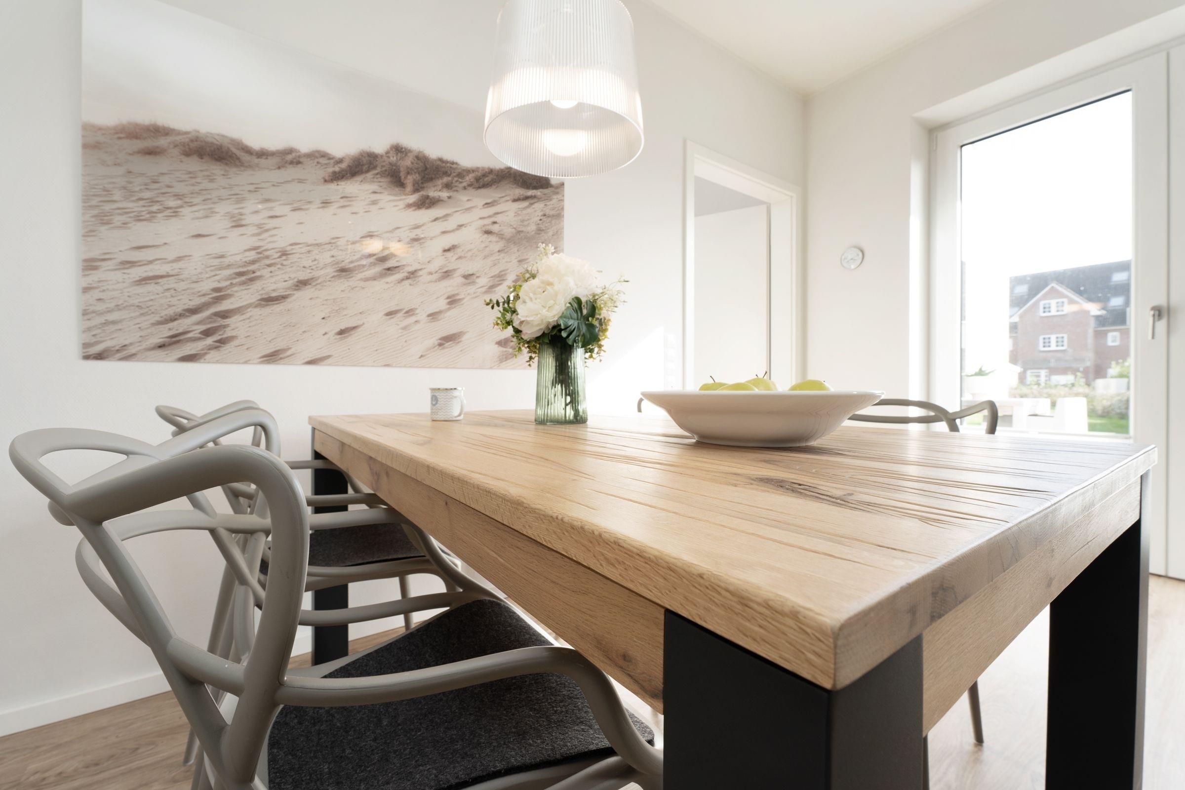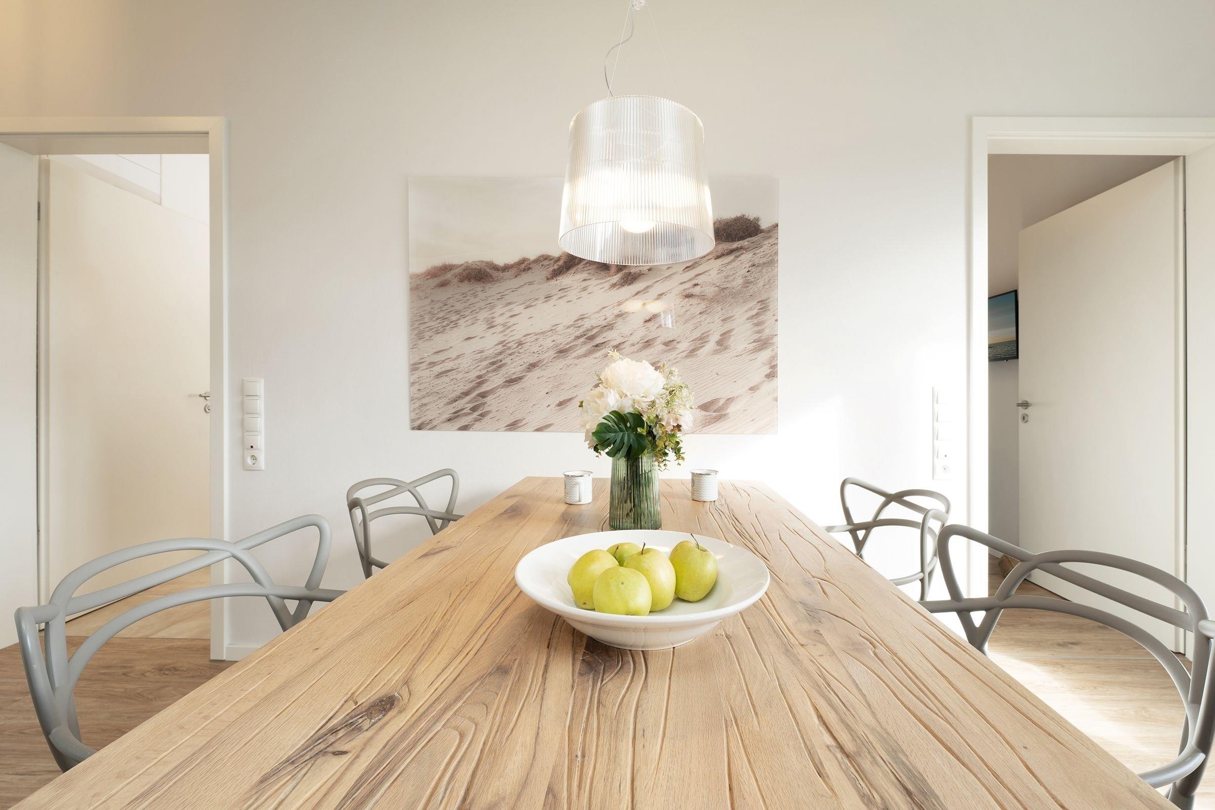 Hell, freundlich und mit bodentiefen Fenstern begrüßt Sie diese moderne, barrierearme Wohnung. Die Einrichtung ist liebevoll ausgesucht und verspricht Wohlfühl-Garantie. In dem großzügigen Wohn- und Essbereich sorgt ein Smart-TV für gute Unterhaltung. Verbringen Sie auf der bequemen Couch Ihre Abende bei einem Glas Wein. Bei gutem Wetter geht es natürlich raus auf die möblierte Terrasse. Genießen Sie hier Ihre Urlaubszeit oder planen Sie Ihre Ausflüge entlang der Ostseeküste. Die offene Küche ist hochwertig ausgestattet und bringt Hobby-Köche zum Lächeln. Nach dem Kochen und Schmausen übernimmt ein Geschirrspüler den Abwasch. Das Schlafzimmer ist mit einem Boxspringbett (180x200 cm) und einem weiteren TV-Gerät möbliert. Das großzügige Bad mit bodengleicher Dusche und Sauna sorgt auch an kälteren Tagen für Wärme und Entspannung. Die gesamte Wohnung verfügt über eine Fußbodenheizung. Im Abstellraum finden Sie einen Waschtrockner.