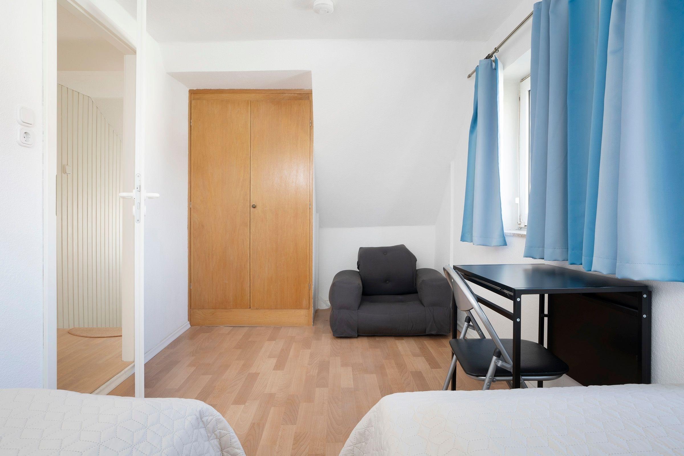 Schlafzimmer 2: 1 Doppelbett (2x 90x200 cm), Kleiderschrank, TV, Verdunkelung ( Außenrollläden)