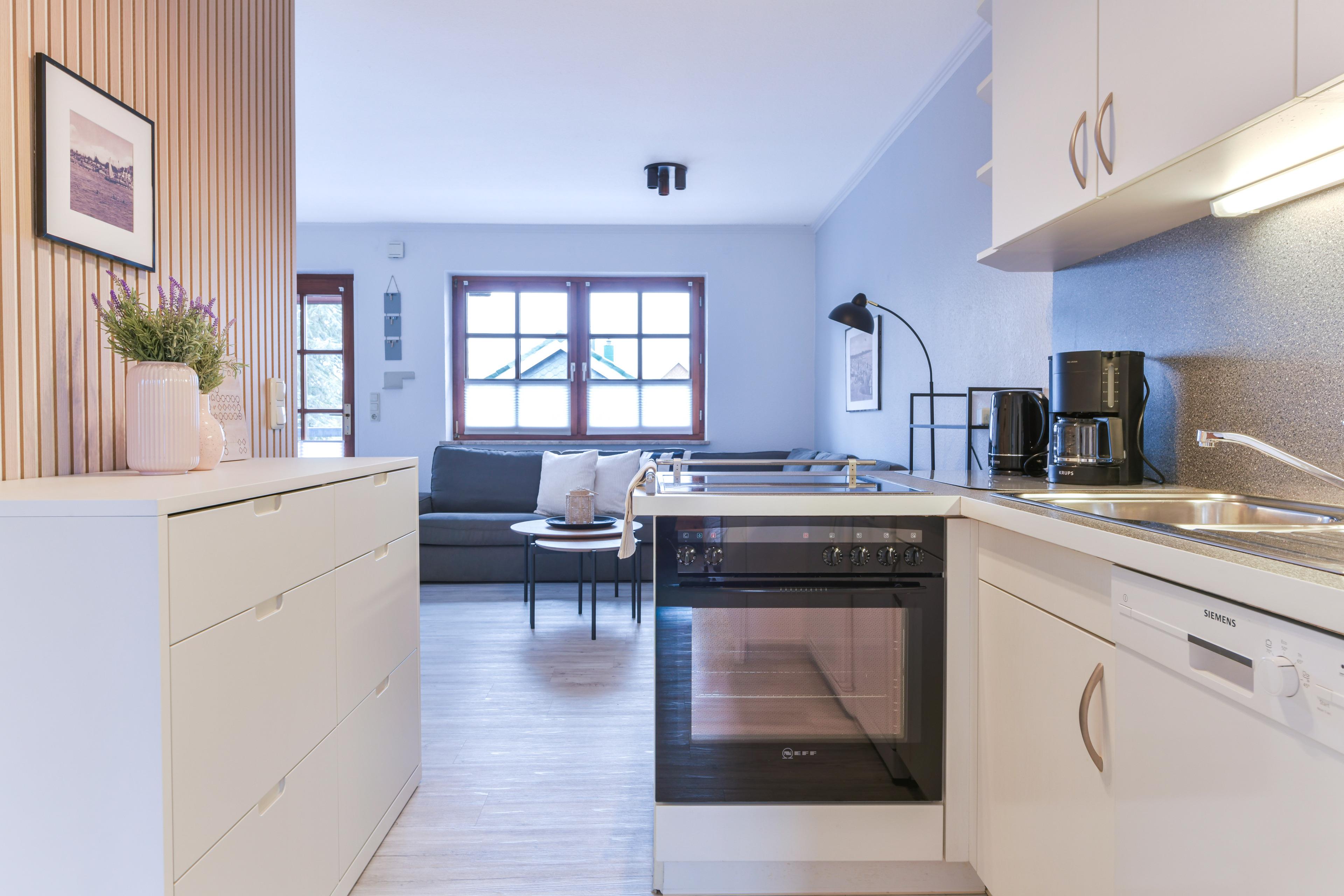 Genießen Sie die schönsten Tage des Jahres in dieser strandnahen und trotzdem ruhig gelegenen Ferienwohnung. Im gemütlichen Wohnzimmer mit bequemer Sofalandschaft und Essecke werden Sie sich sofort wohl fühlen. Ein TV-Gerät sorgt für Unterhaltung. Bei schönem Wetter lockt sicher der möblierte Südbalkon, von dem Sie einen schönen Blick ins Grüne haben. Genießen Sie hier die Sonnenstunden oder planen Sie Ihre Ausflüge entlang der Ostseeküste. Die zum Wohnbereich hin offene, gut ausgestattete Küche verfügt über eine Spülmaschine. Zaubern Sie hier in Ruhe Ihre Lieblingsspeisen. Angenehme Nachtruhe finden Sie in den beiden Schlafräumen: Ein Zimmer ist mit einem Doppelbett (180x200 cm) ausgestattet, in dem anderen Zimmer stehen 2 Einzelbetten (90x200 cm und 90x170 cm). Beide Räume verfügen über einen Kleiderschrank und können mit Rollos verdunkelt werden. Das helle Duschbad verspricht einen guten Start in den Tag.