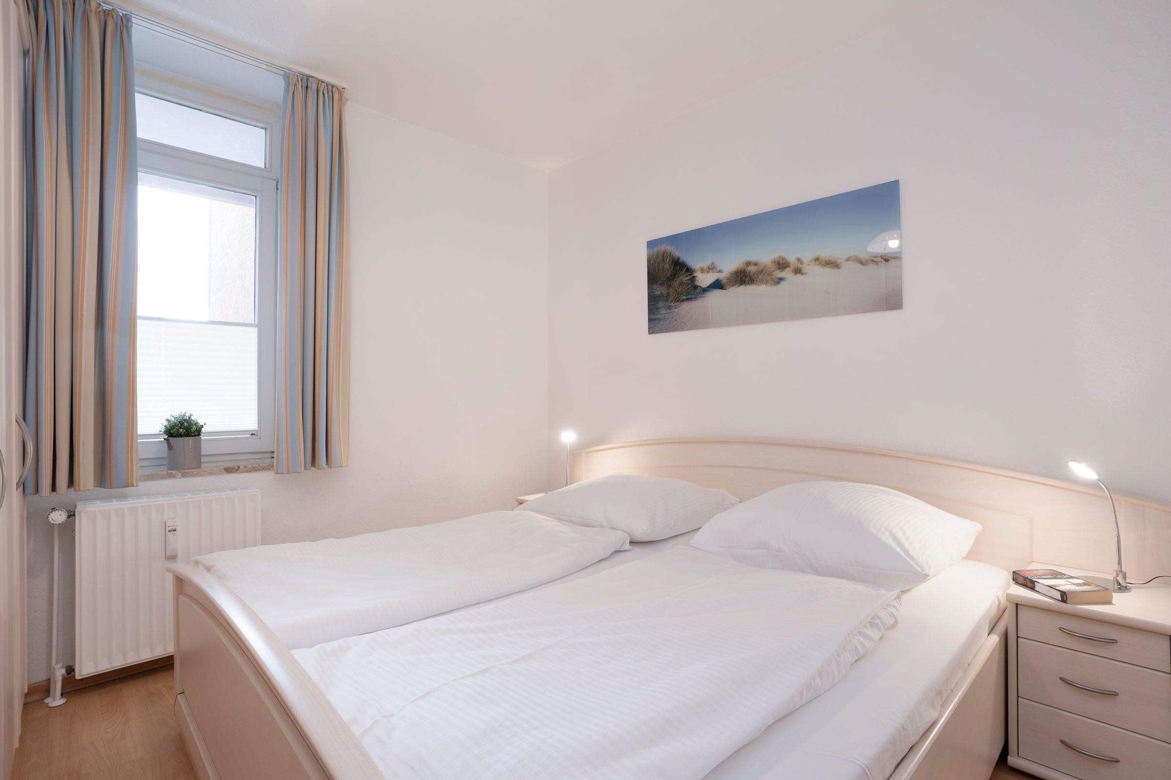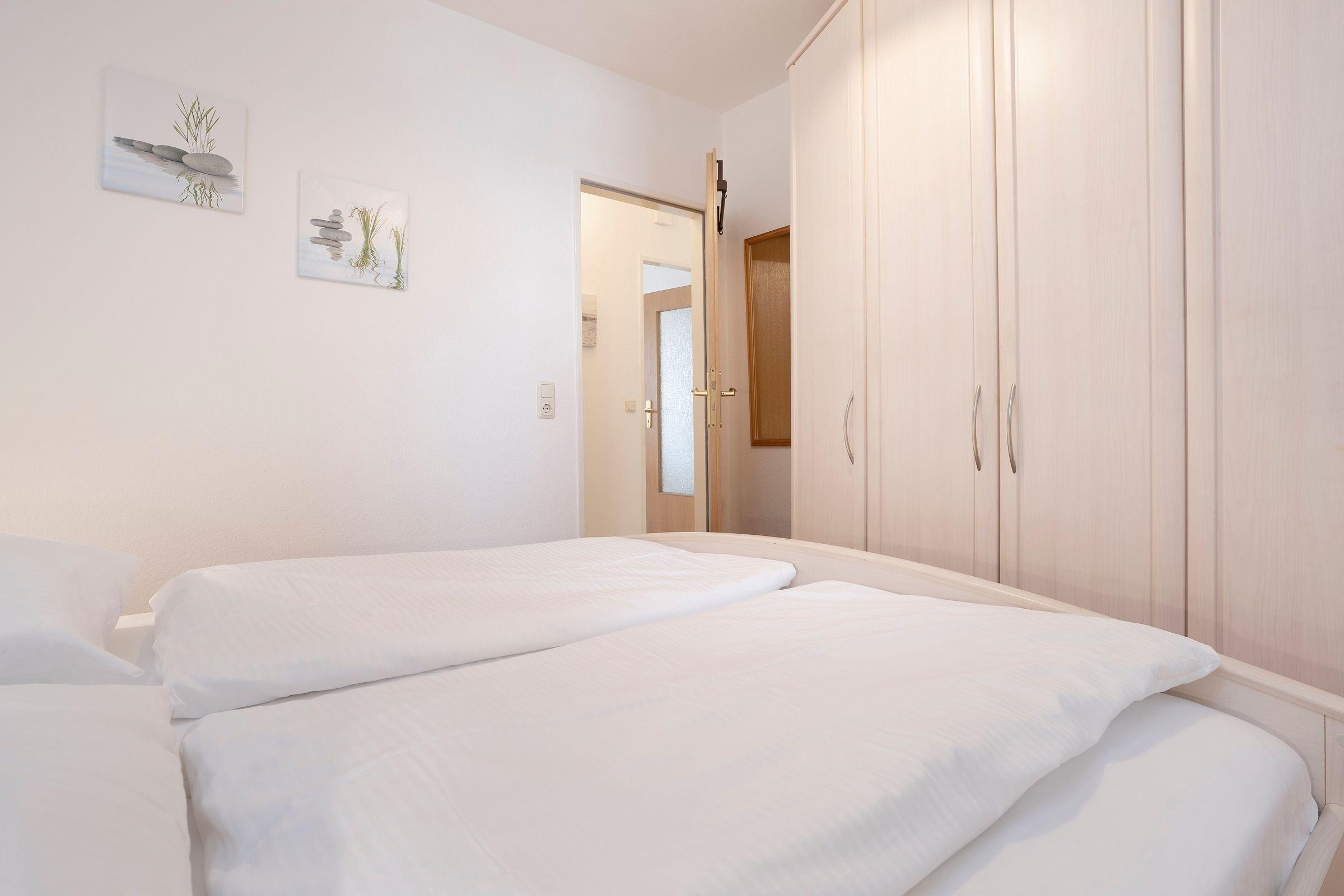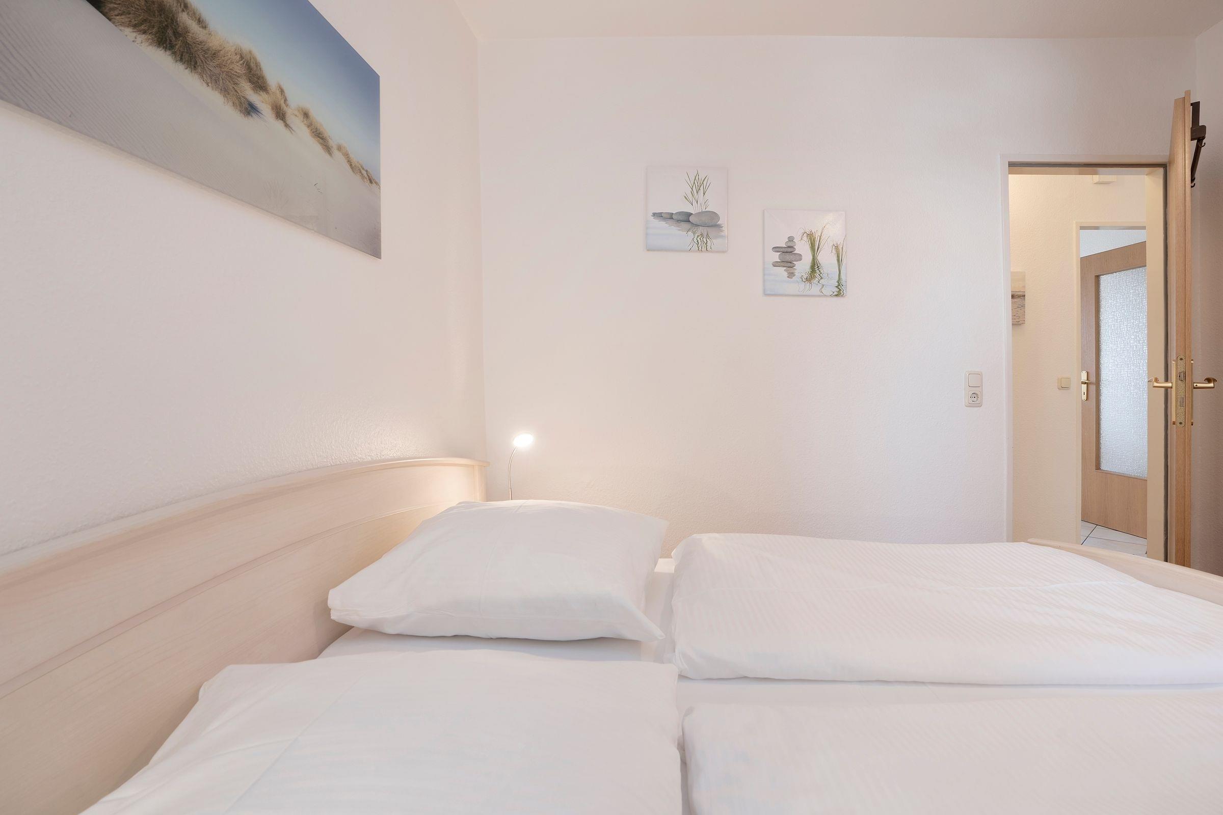 Treten Sie ein und lassen Sie den Alltag hinter sich . Es erwartet Sie ein großzügiger Wohn- und Essbereich mit einer gemütlichen Doppelbettcouch (150x190 cm), die nach einem schönen Urlaubstag für Entspannung und reichlich Platz für kuschelige Filmabende auf dem Kabel-TV (Flachbild 81er Bild) bietet. Auf der sonnigen Terrasse können Sie bei einem leckeren Frühstück die ersten Sonnenstrahlen des Tages genießen. Die kleine Küche ist in das Wohnzimmer integriert, bietet mit 4-Platten-Herd, Kaffeemaschine, Toaster, Wasserkocher, Eierkocher, Kühlschrank mit Gefrierfach etc. alle Annehmlichkeiten, um köstliche Mahlzeiten zuzubereiten. Höchsten Schlafkomfort für zwei Personen finden Sie im separaten Schlafzimmer mit einem Doppelbett (2x 90x200 cm), das mit großem Kleiderschrank auch Stauraum für Ihre Urlaubsgarderobe bietet. Ein schönes helles Bad mit Dusche/WC rundet diese Wohnung ab.