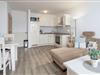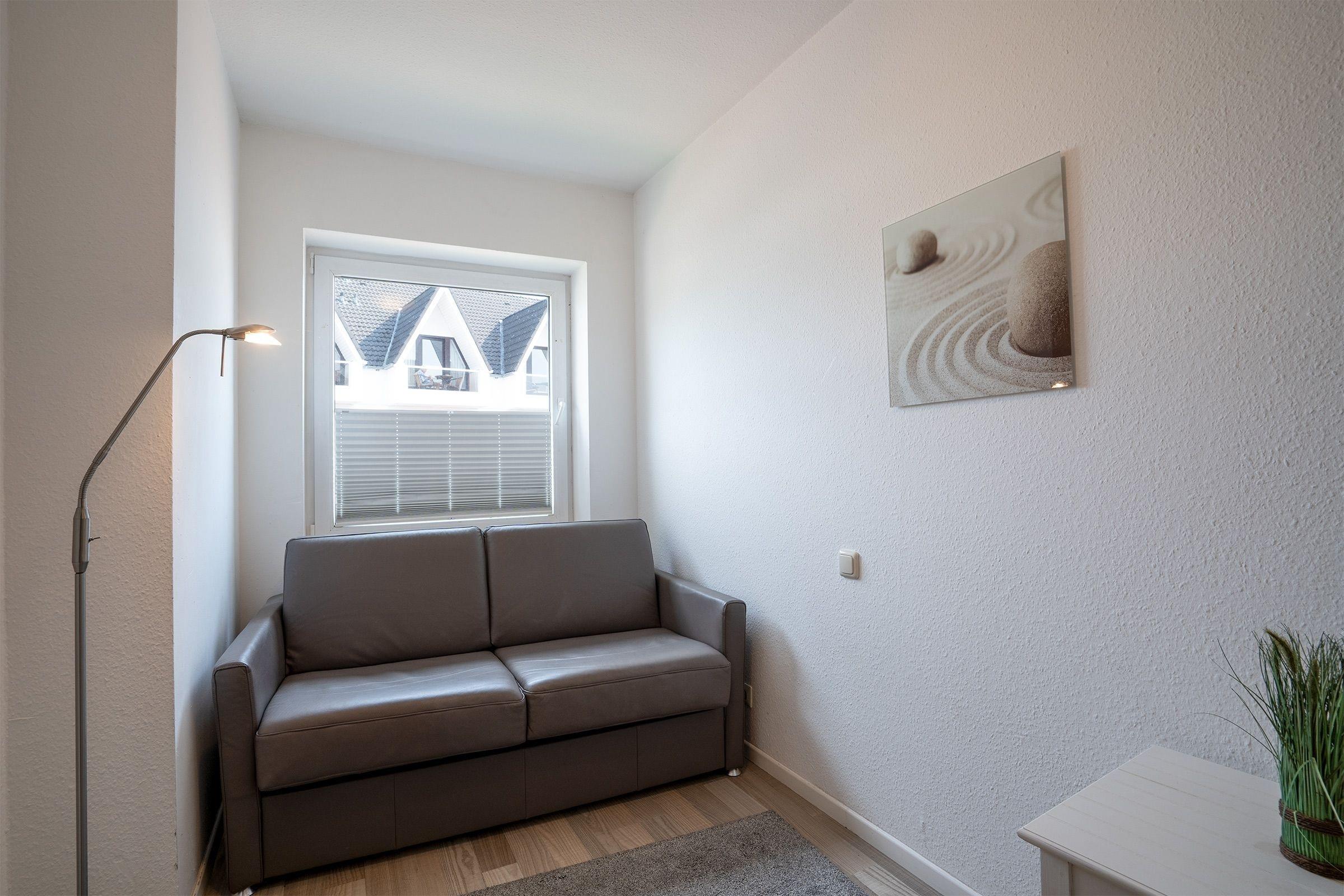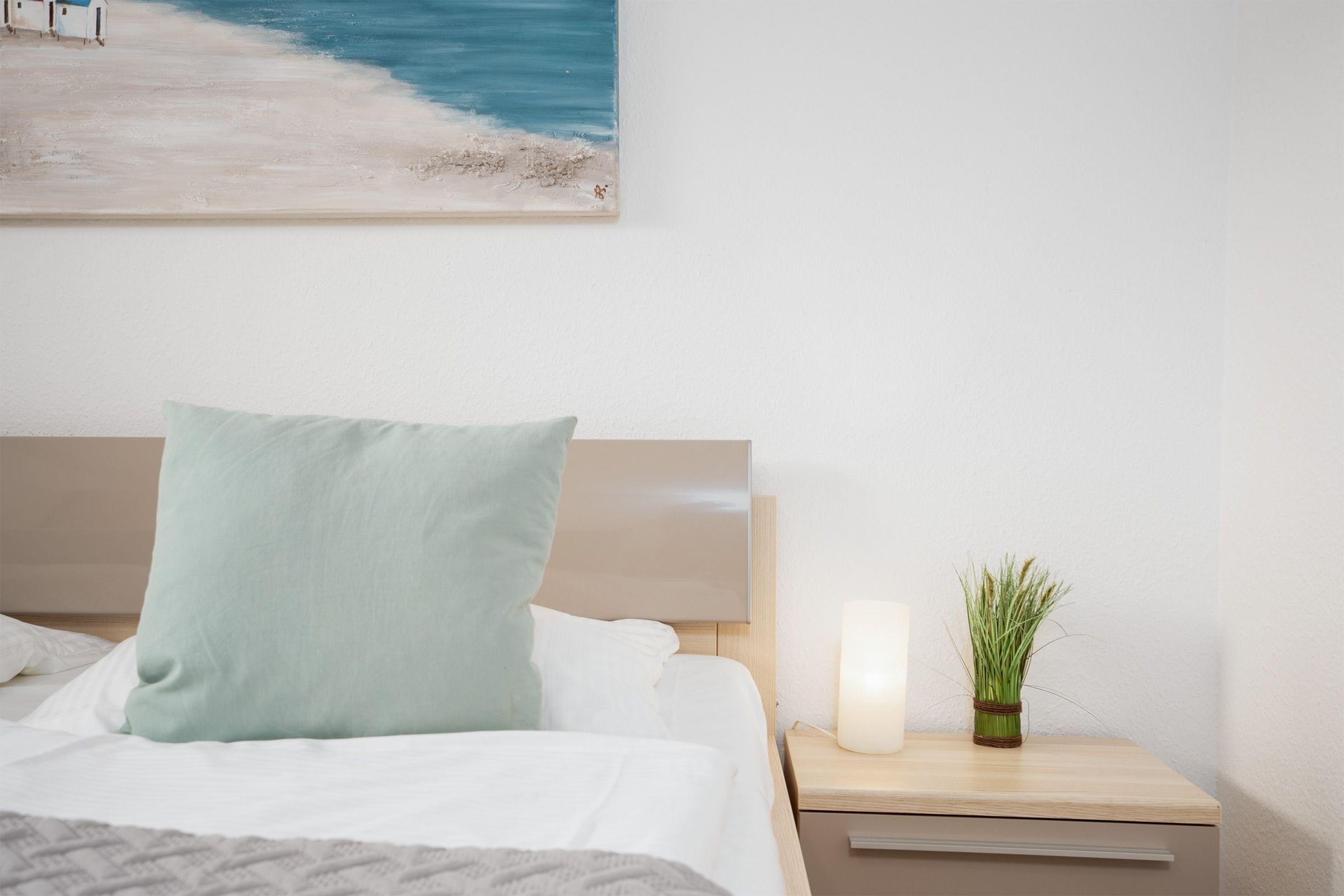 Eine schöne Ferienunterkunft mit 2 Schlafräumen in der Wohnresidenz in der 1. Etage. Diese Wohnung verfügt über ein Wohnzimmer mit Couch- und Essecke, Flachbild-TV, DVD-Player und Balkon. Die zum Wohnzimmer integrierte Küche ist gut ausgestattet und lässt keine Wünsche offen. Ein Schlafzimmer hat ein Doppelbett (2x 90x190 cm), das zweite Schlafzimmer eine Schlafcouch (ca. 130x190 cm). Das helle Duschbad rundet das Angebot dieser Ferienwohnung ab.