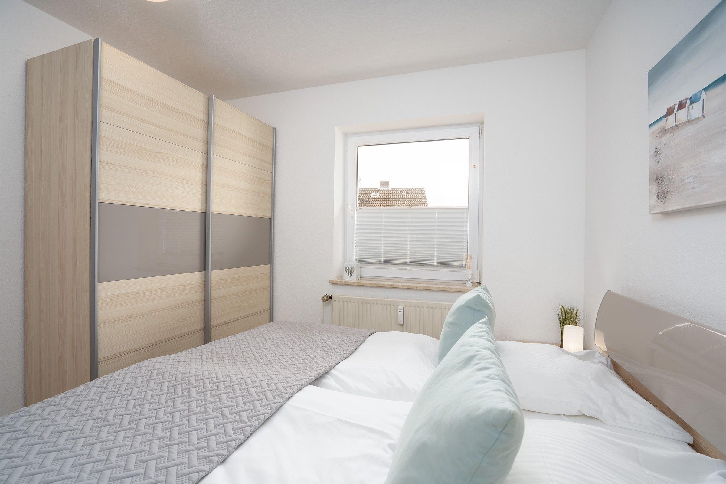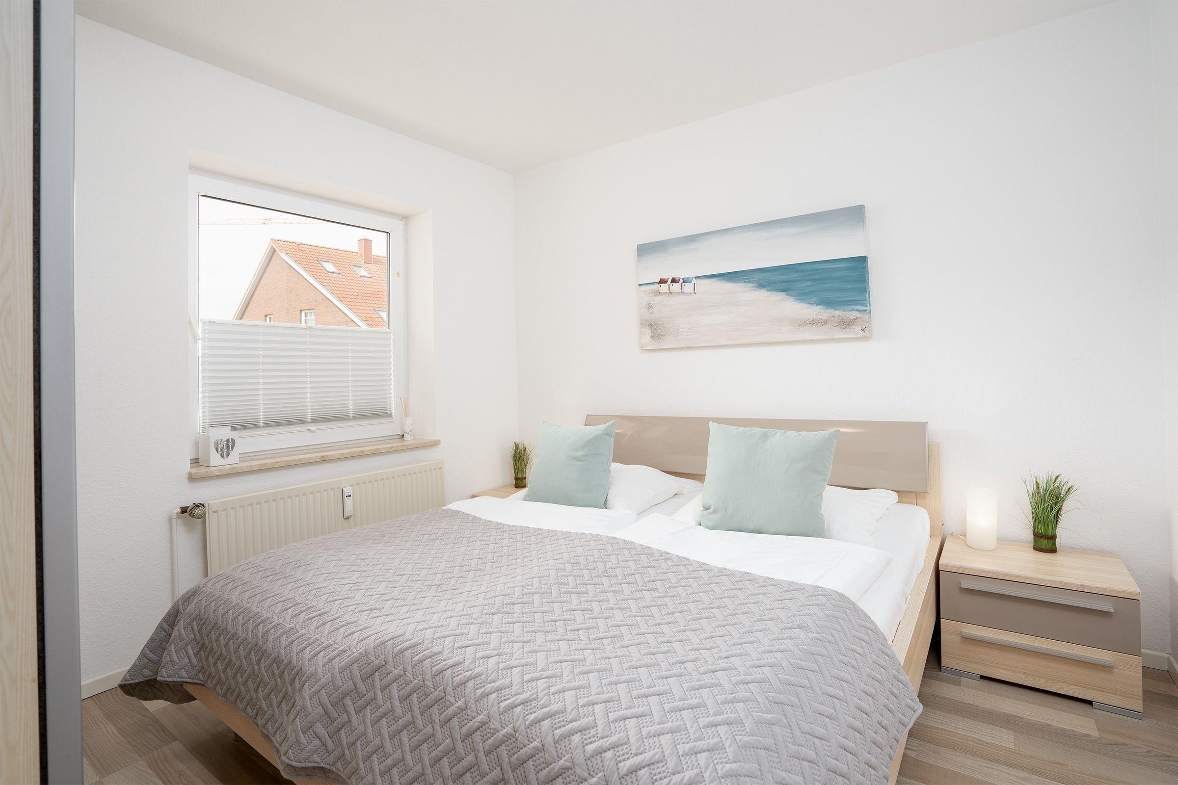 Helle und moderne Ferienwohnung in Ortskern von Kellenhusen für max. 4 Personen im Obergeschoss mit Balkon, 2 separaten Schlafzimmern und einer Wohnfläche von ca. 59 m².