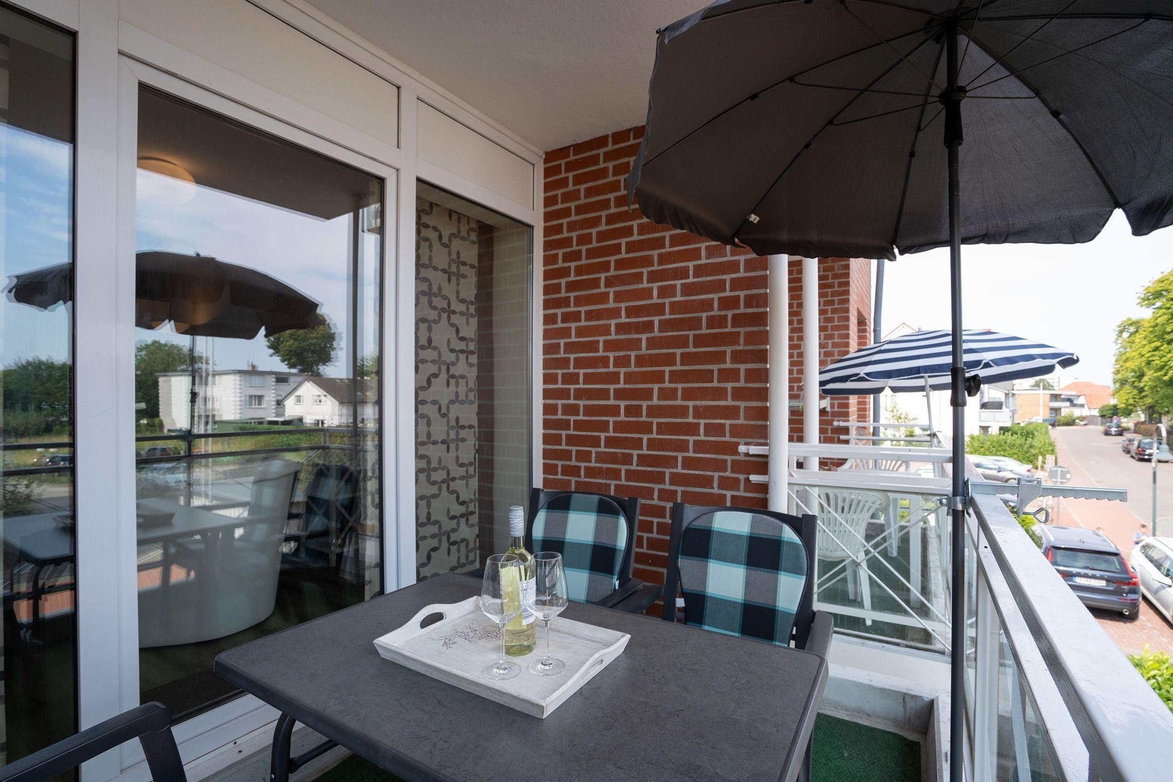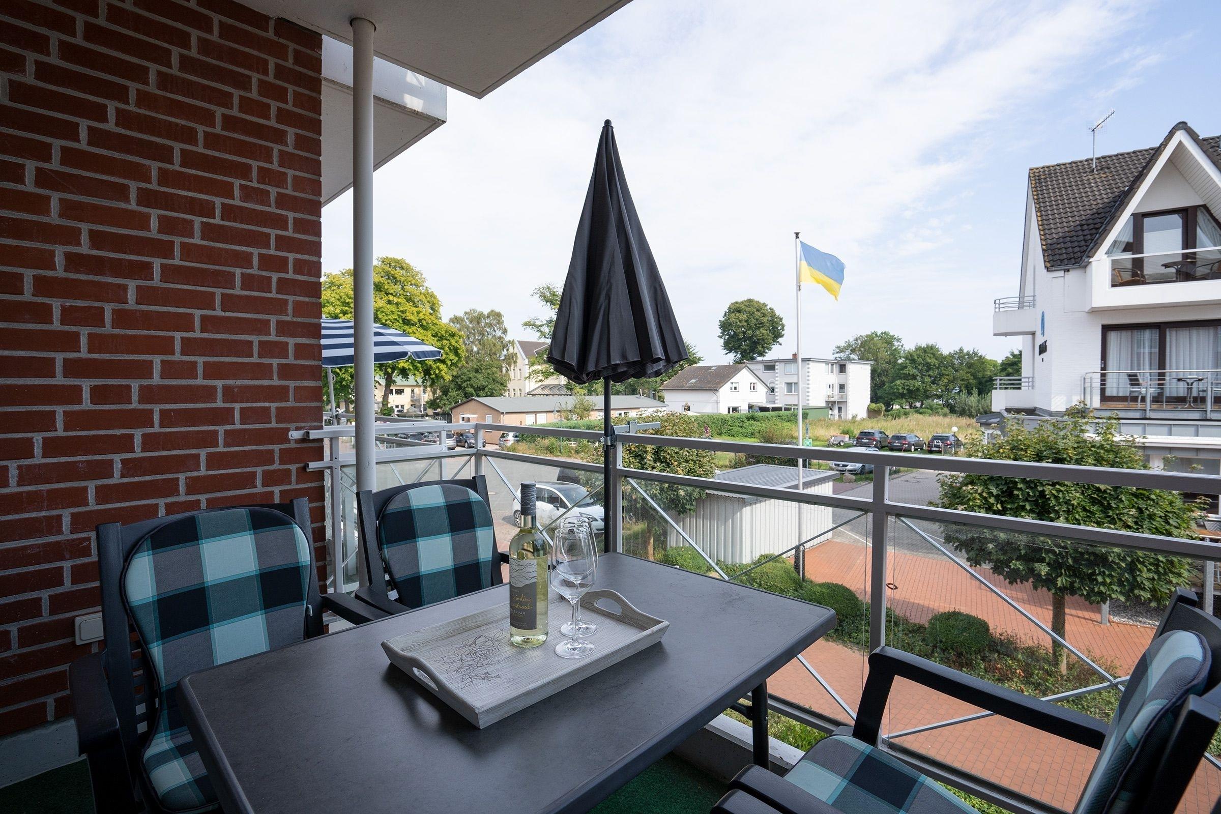 Moderne Ferienwohnung mit Balkon nahe Ostseestrand in Kellenhusen, ideal für Familien und Hundebesitzer.